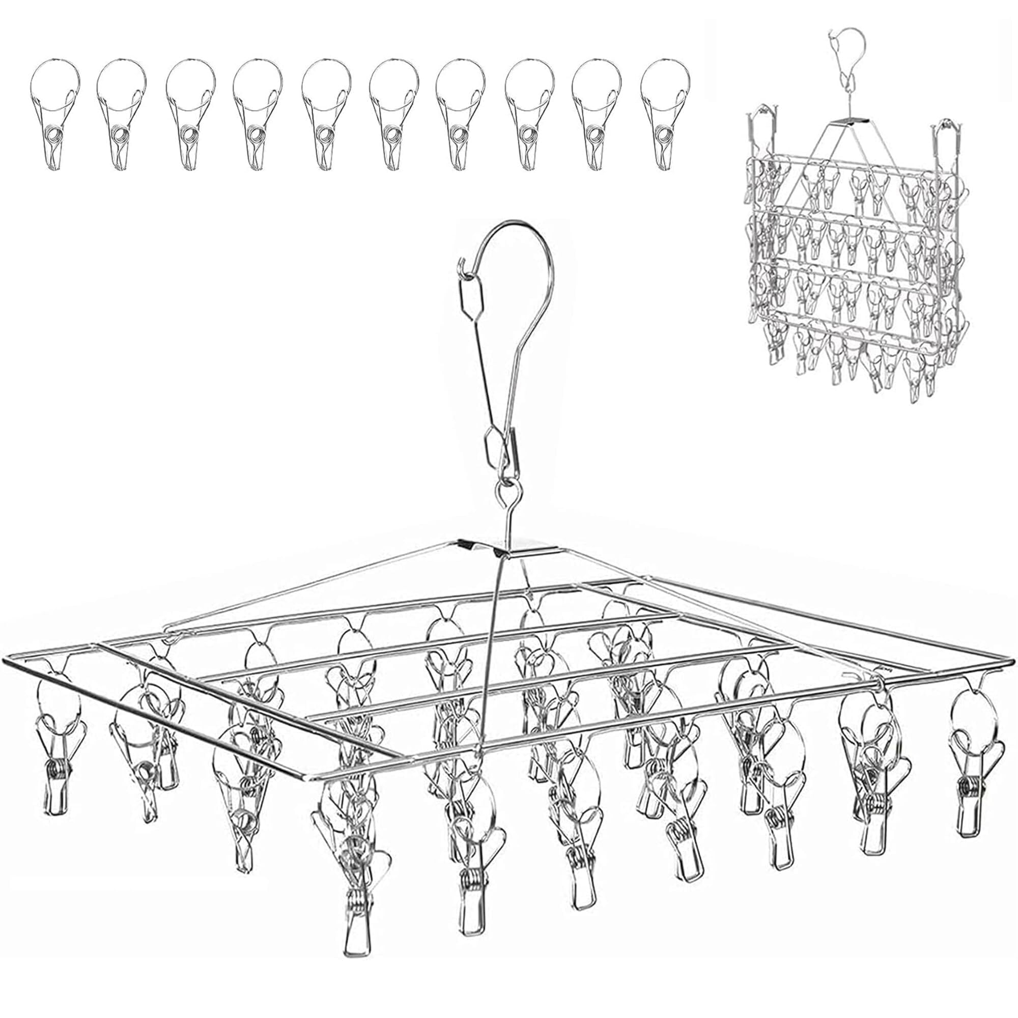 ピンチハンガー 36ピンチ ホスール(HOSUR) 角ハンガー 引っ張るだけ オールステンレス 洗濯ハンガー 洗濯ピンチ 洗濯 大きい タオル 折りたたみ式【予備ピンチ10個付)】