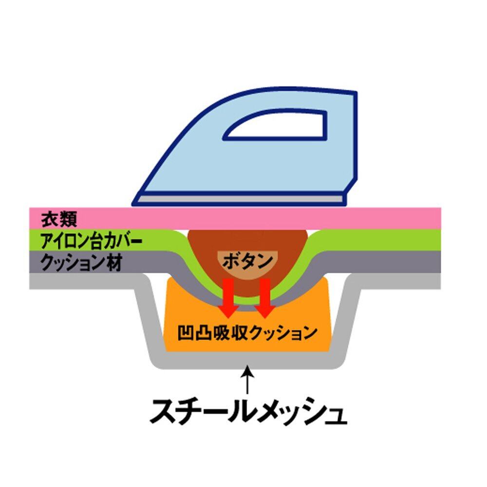 表面布:綿100%、クッション材:ポリエステル、ボタンプレスゾーン(凹凸吸収クッション):ポリウレタンフォーム、天板:スチール(粉体塗装)、脚部・フック:スチール(ユニクロメッキ)