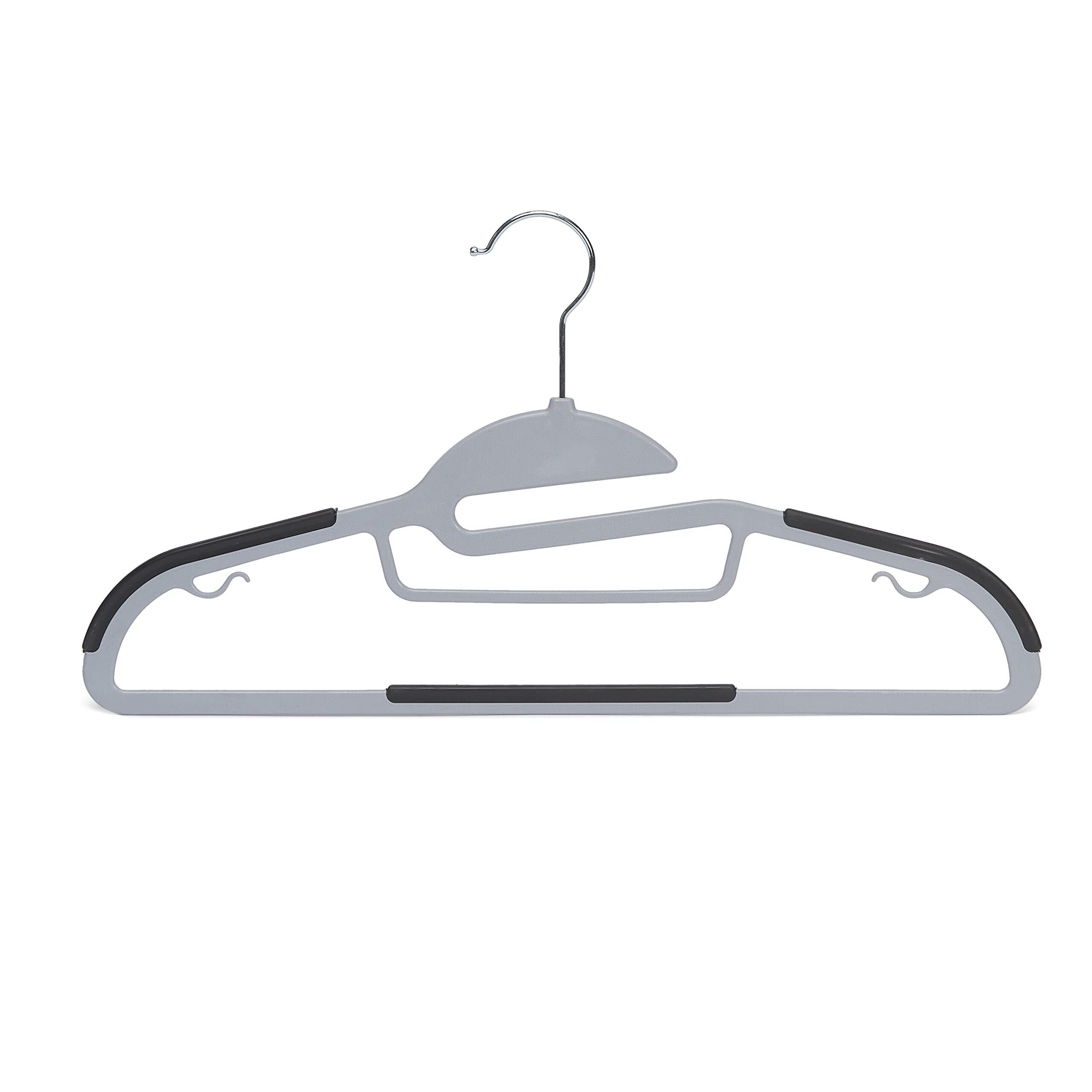 360度回転可能なフックが付いた、グレーのプラスチック製ハンガー50本組入り。