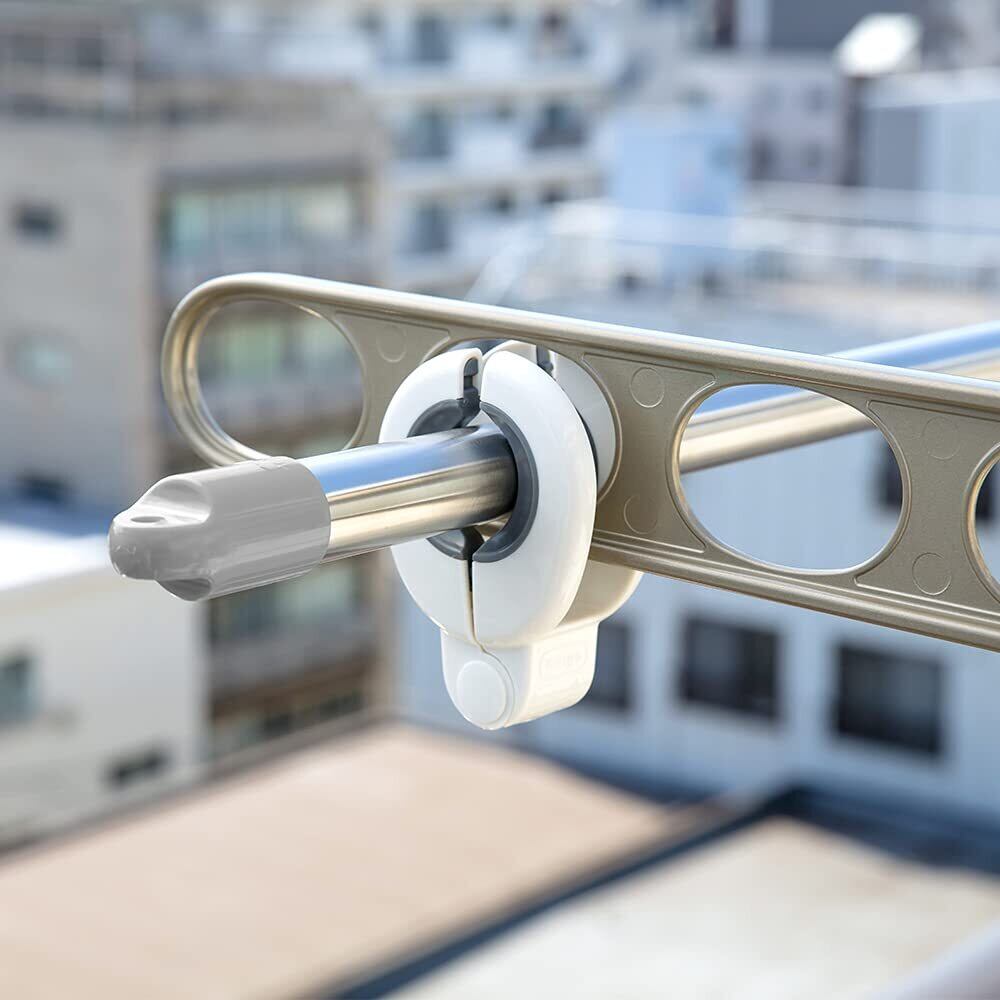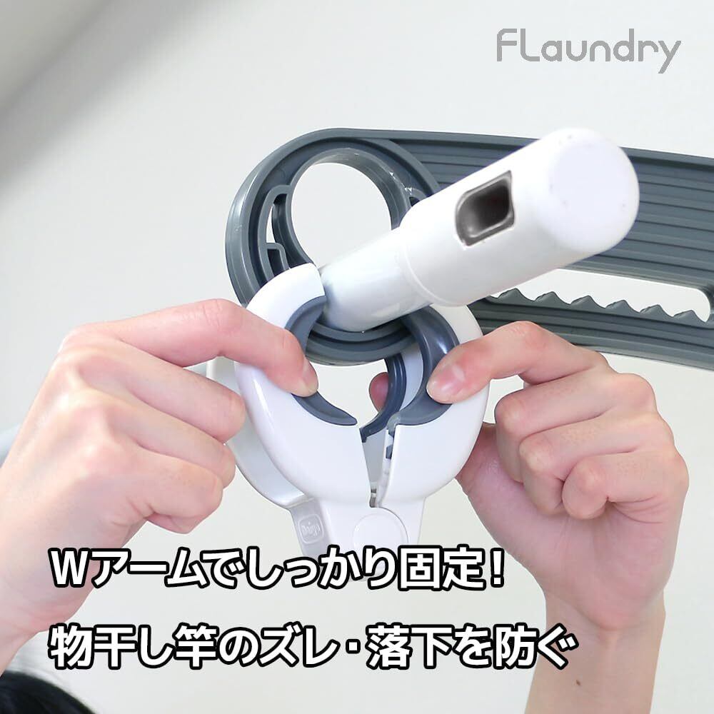 ●物干し竿と竿受け両方を一度で挟めるWアーム形状でしっかり固定し、上下左右のズレ・落下を防ぐことができます。