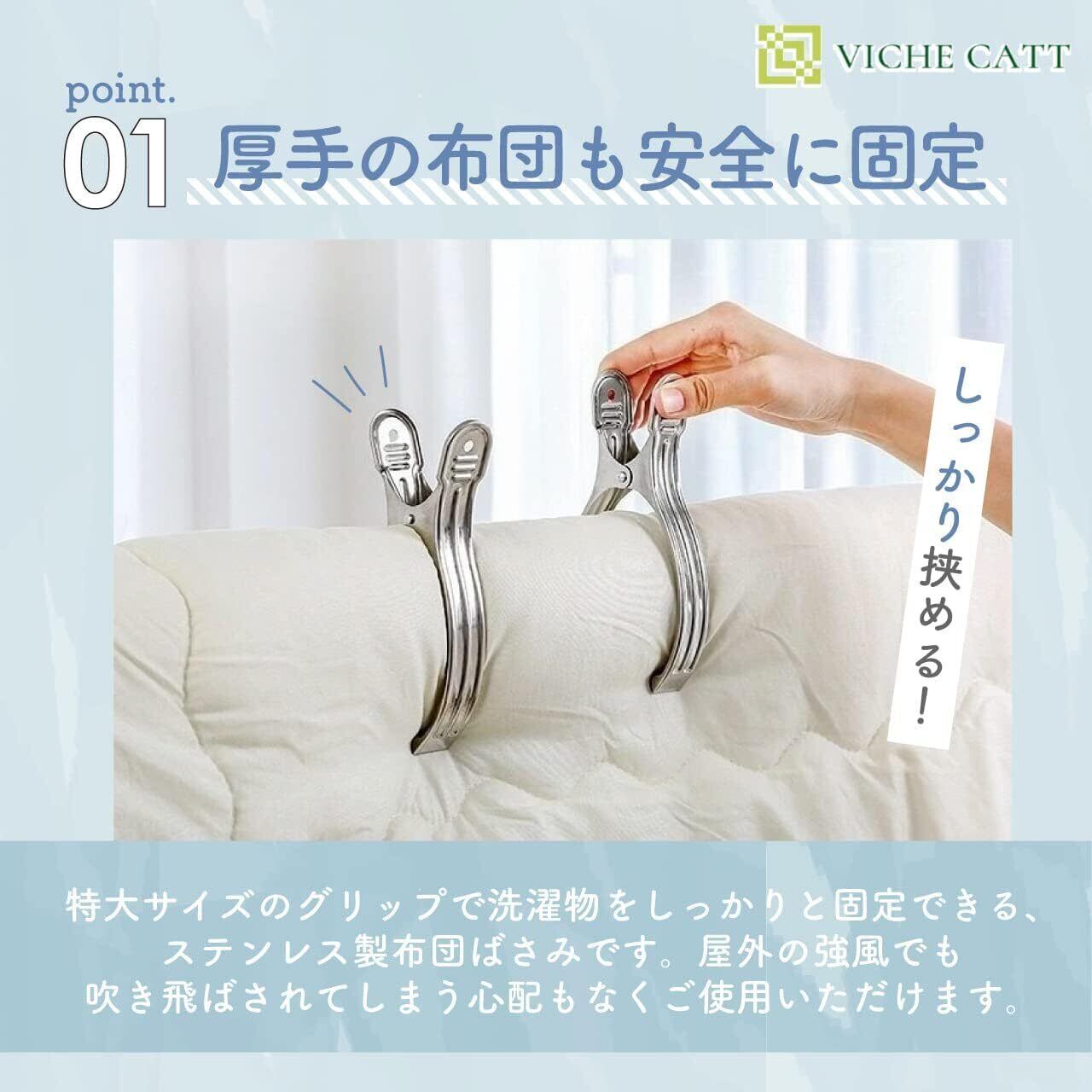 VICHE CATT 布団ばさみ 物干し ステンレス 洗濯バサミ せんたくばさみ 強力 防風タイプ 大型 16㎝ 6個 (6個セット)