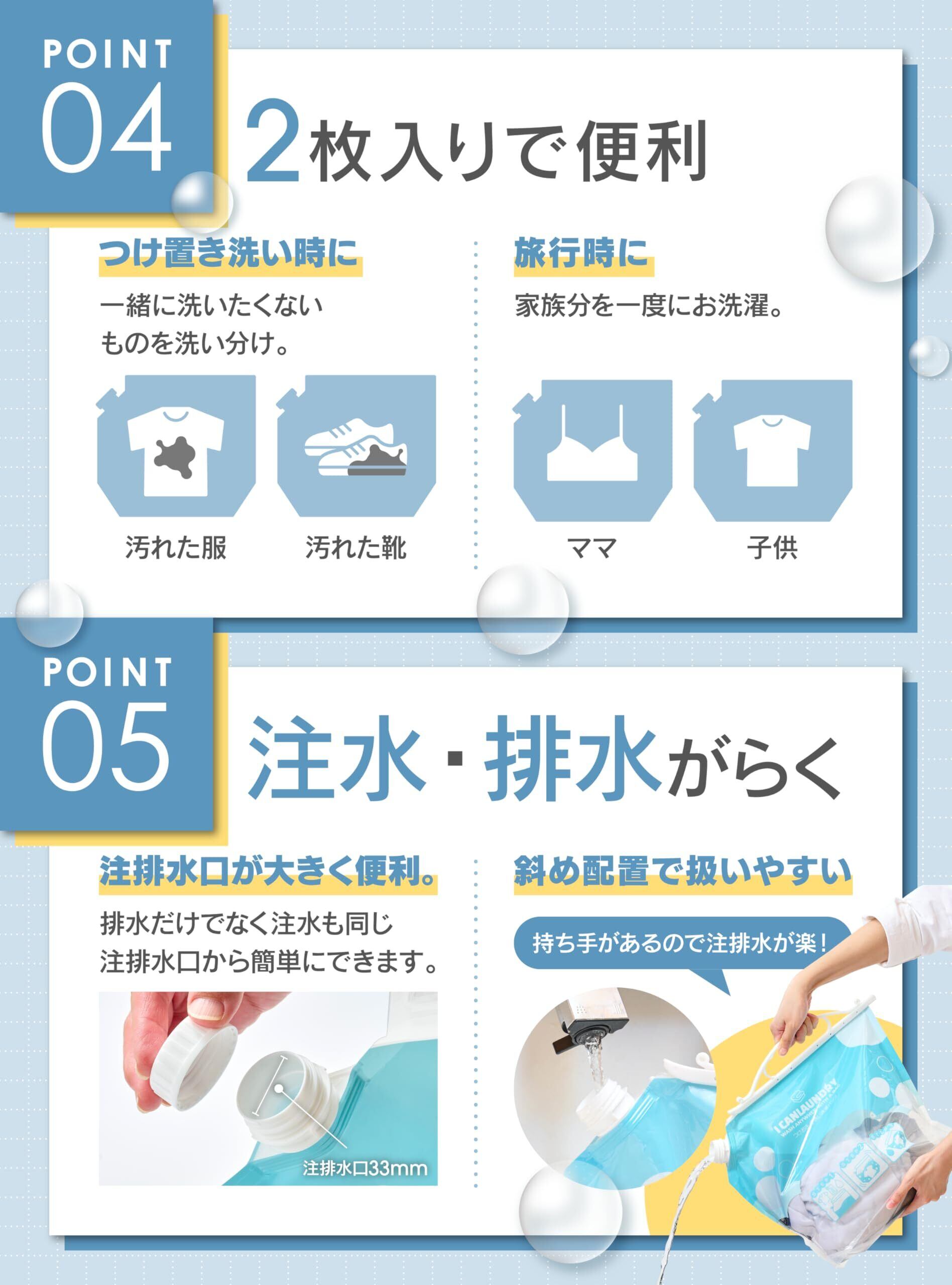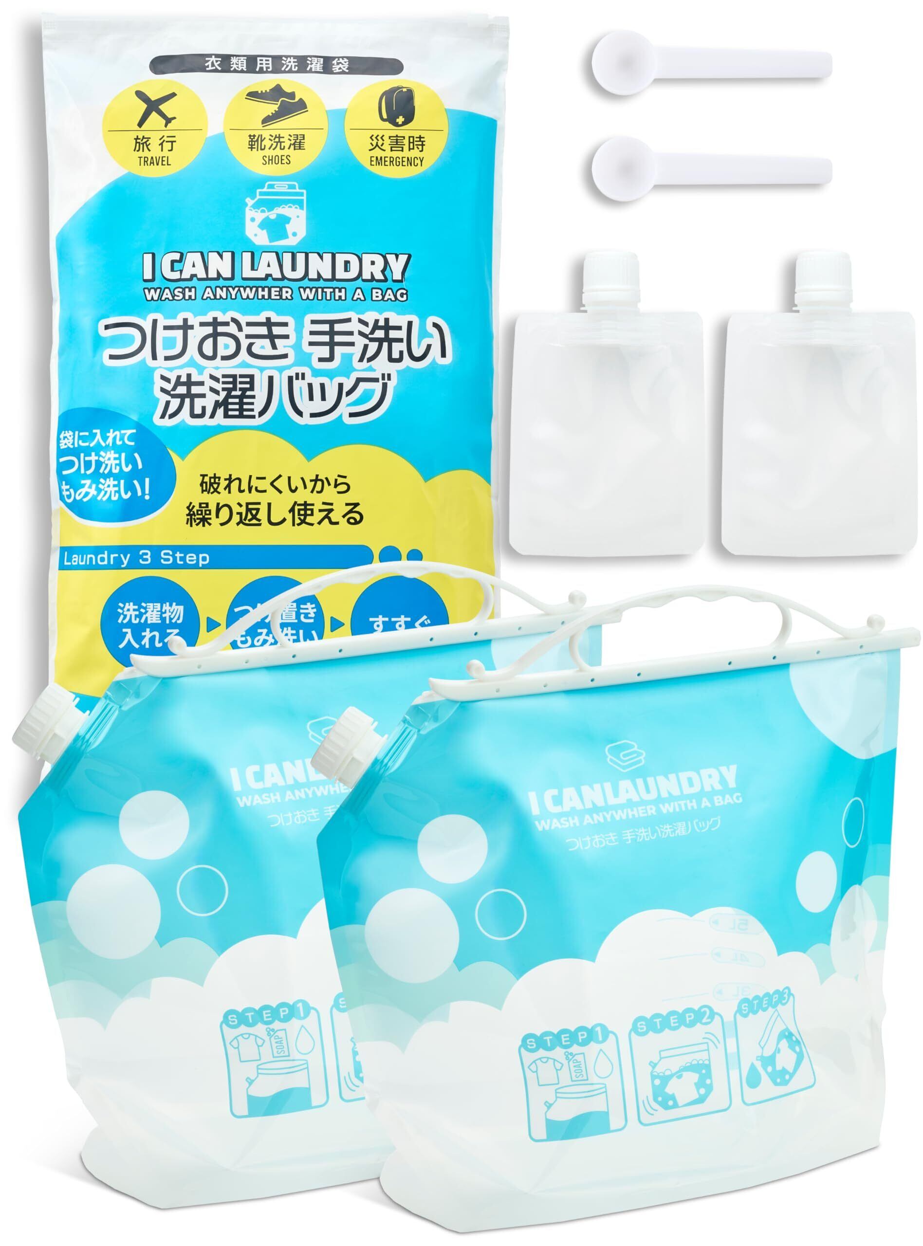 どこでもお洗たく 2枚入り 6L 洗濯袋 持ち手付き つけ置き洗い 旅行 手洗い 洗たく袋 上履き洗い アウトドア 防災