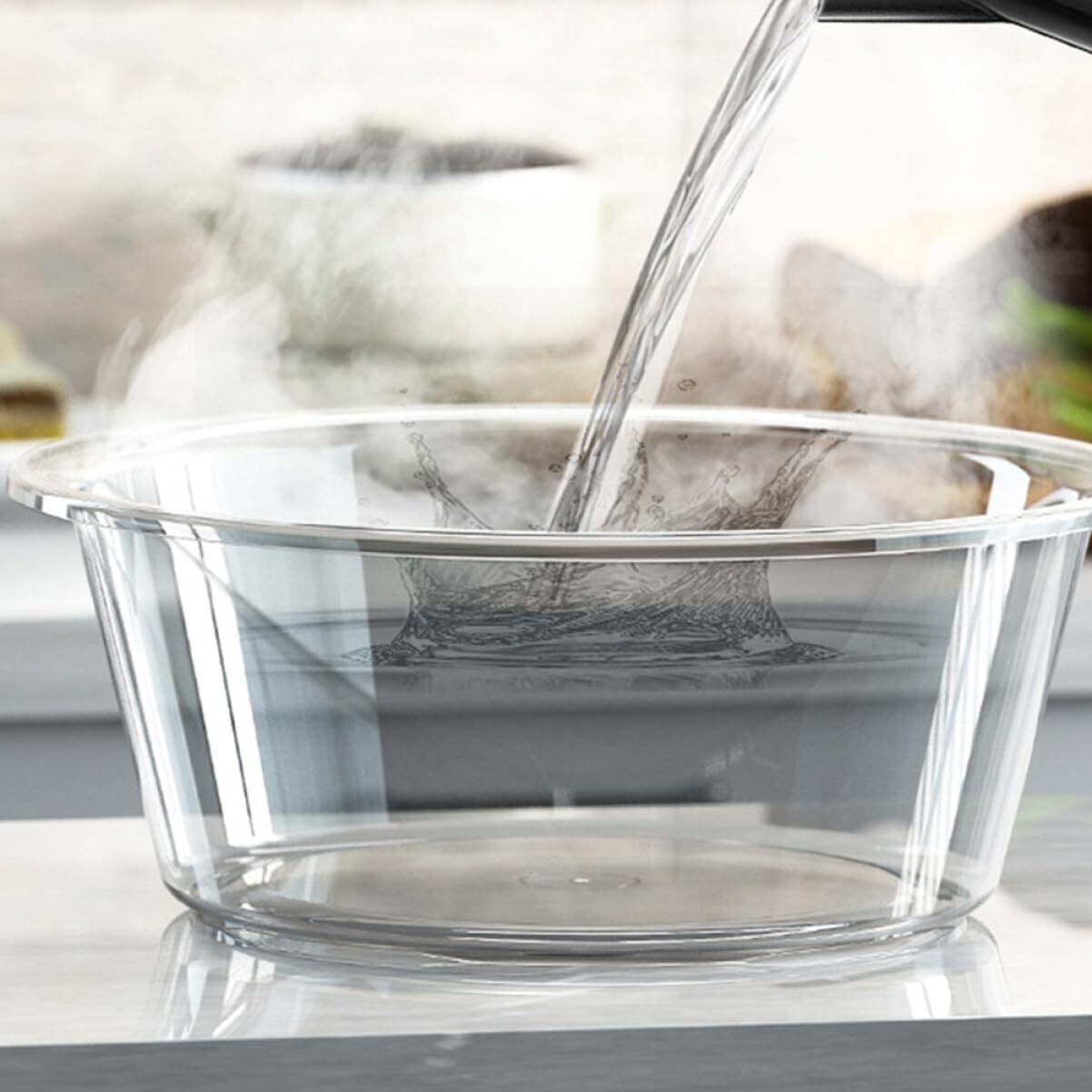 -透明な素材から作られたこの洗練されたモダンなデザインは、毎日の洗浄ルーチンを丸い浴槽に変えます。