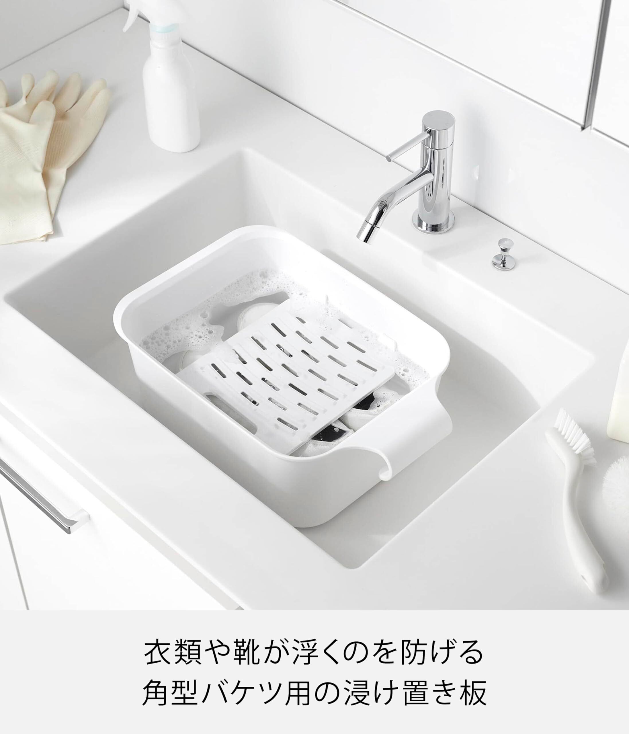 山崎実業(Yamazaki) バケツで使える 洗濯&浸け置き板 ホワイト W25.5×D16.7×H1.1cm(ストッパー短辺取り付け時) タワー tower 浸け置き洗い 四角いバケツ用 10133