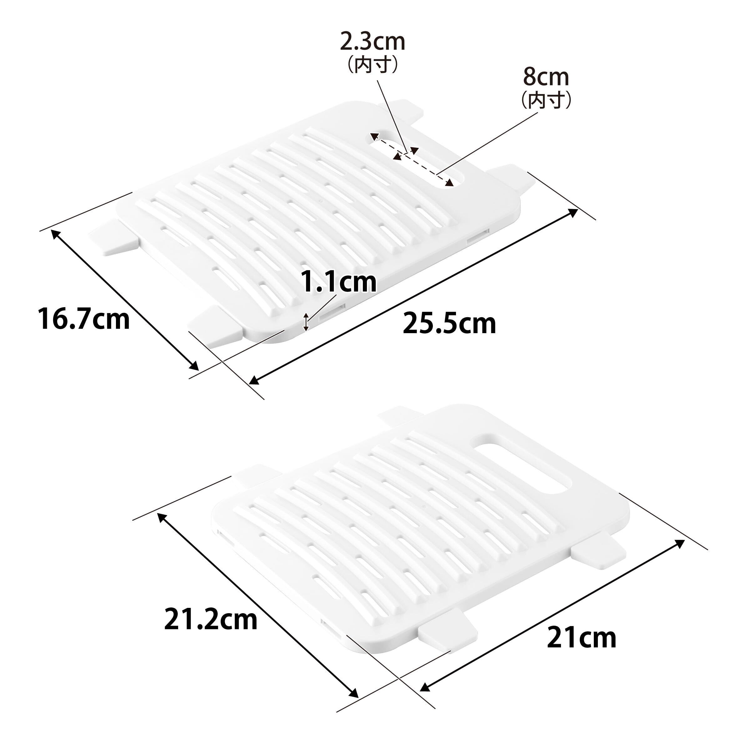 商品サイズ:W25.5×D16.7×H1.1cm(ストッパー短辺取り付け時) W21×D21.2×H1.1cm(ストッパー長辺取り付け時) ▪商品重量:110g