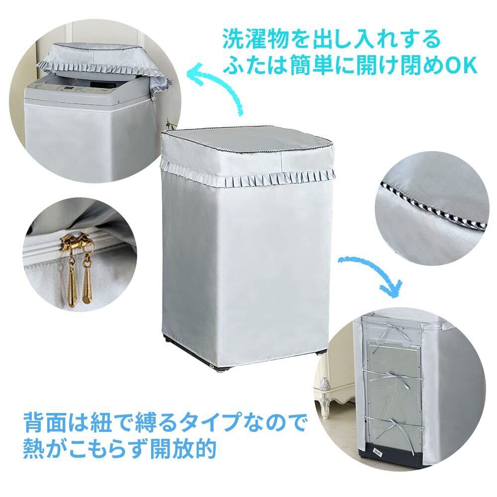 mitas 洗濯機カバー 防水 屋外対応 厚手 雨風 ホコリ 台風対策 ファスナー式 開閉可能 フリル付き 錆び防止 シルバー 撥水 日焼け防止 mitas TN-SENTAKU Sサイズ