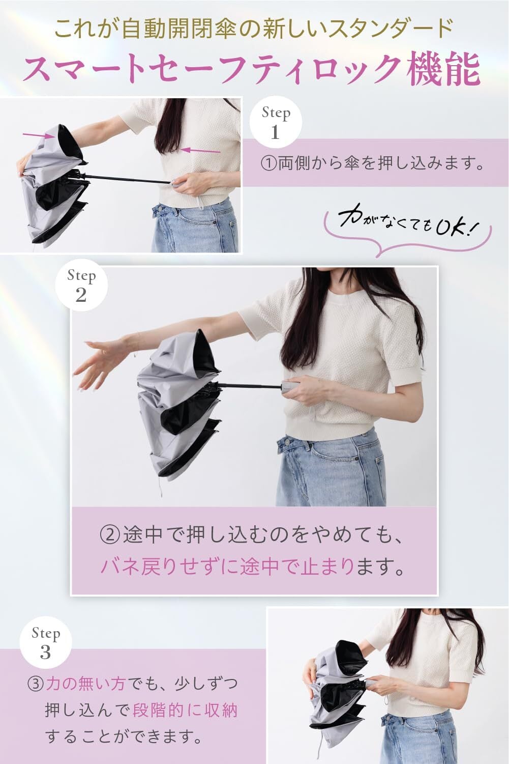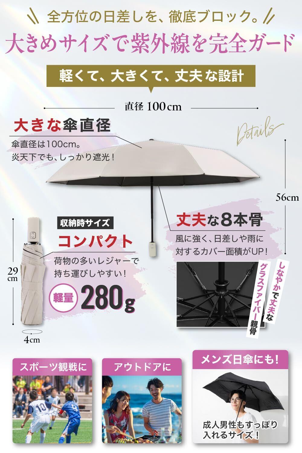 【スマートセーフティロック機能搭載】 日傘 晴雨兼用 UVカット率100% 完全遮光 軽量 280g コンパクト 折りたたみ レディース メンズ 男女兼用 遮熱 携帯便利 ワンタッチ自動開閉