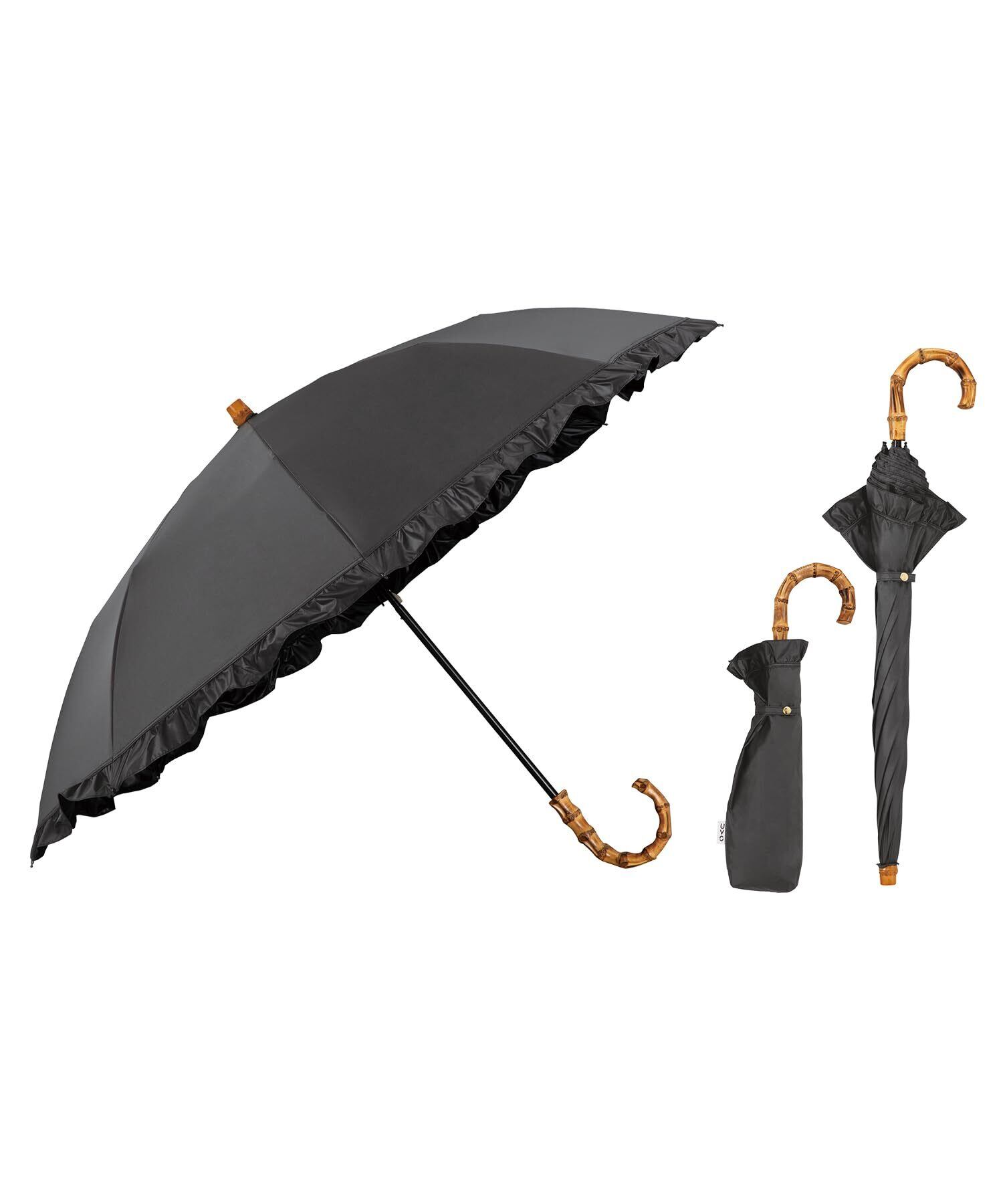 Wpc. 最強の日傘 UVO(ウーボ)折りたたみ傘/2段 フリル ブラック 《遮光率&UVカット率100%/UPF50+/遮熱/晴雨兼用》 親骨50cm レディース 長傘としても使える 2way バンブー おしゃれ UVO2F-012