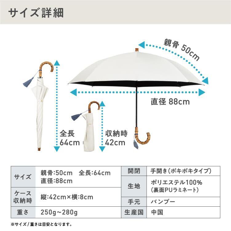 紫外線 UV対策 レディース 女性 バンブー ブランド おしゃれ 遮熱 撥水 UPF50+ ブランド おしゃれ 2WAY 2段式 可愛い かわいい 50cm シンプル 手開き 無地 タッセル スタンダード 通勤 通学 耐風 コーディネート オフィス カジュアル 日常使い 耐久性 ハイスペック オフホワイト ベージュ ラベンダー ブルーグレー ブラック 木陰 紫外線 UV対策