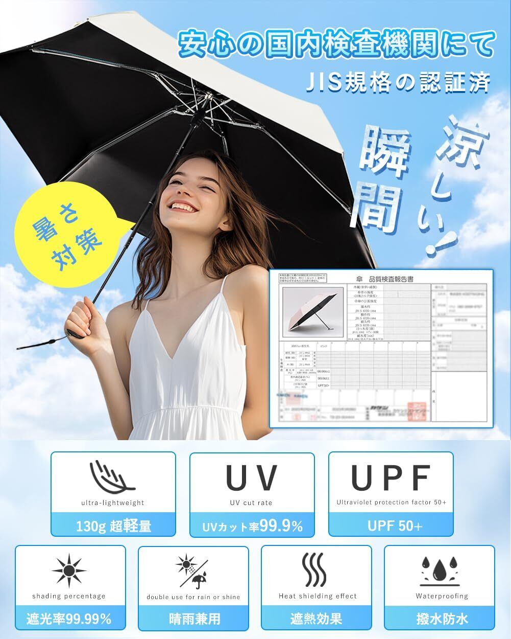 【JIS認証】日傘 超軽量 130g 折りたたみ傘 折り畳み日傘 UVカット率 遮熱 折り畳み傘 紫外線遮断 晴雨兼用 梅雨対策 耐風撥水 丈夫 コンパクト携帯便利 完全遮光 熱中症対策 メンズ レディース 男女兼用 収納ポーチ付き 母の日 父の日 プレゼント