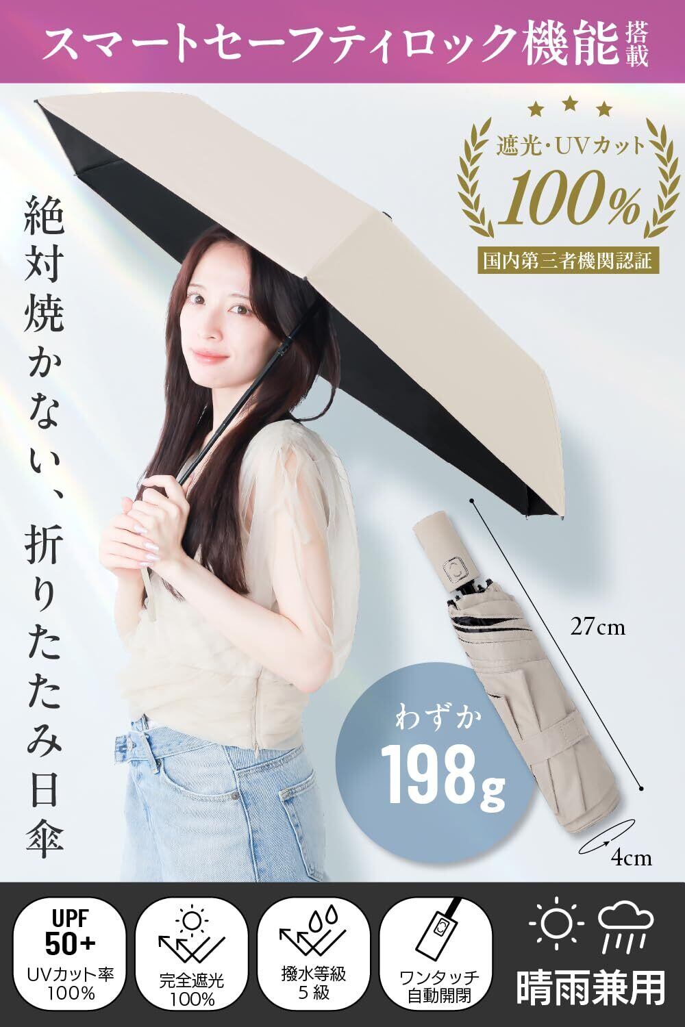 日傘 折りたたみ 軽量 198g 晴雨兼用 レディース UVカット 100 完全遮光 コンパクト スマートセーフティロック機能搭載 メンズ 男女兼用 遮熱 携帯便利 ワンタッチ 自動開閉
