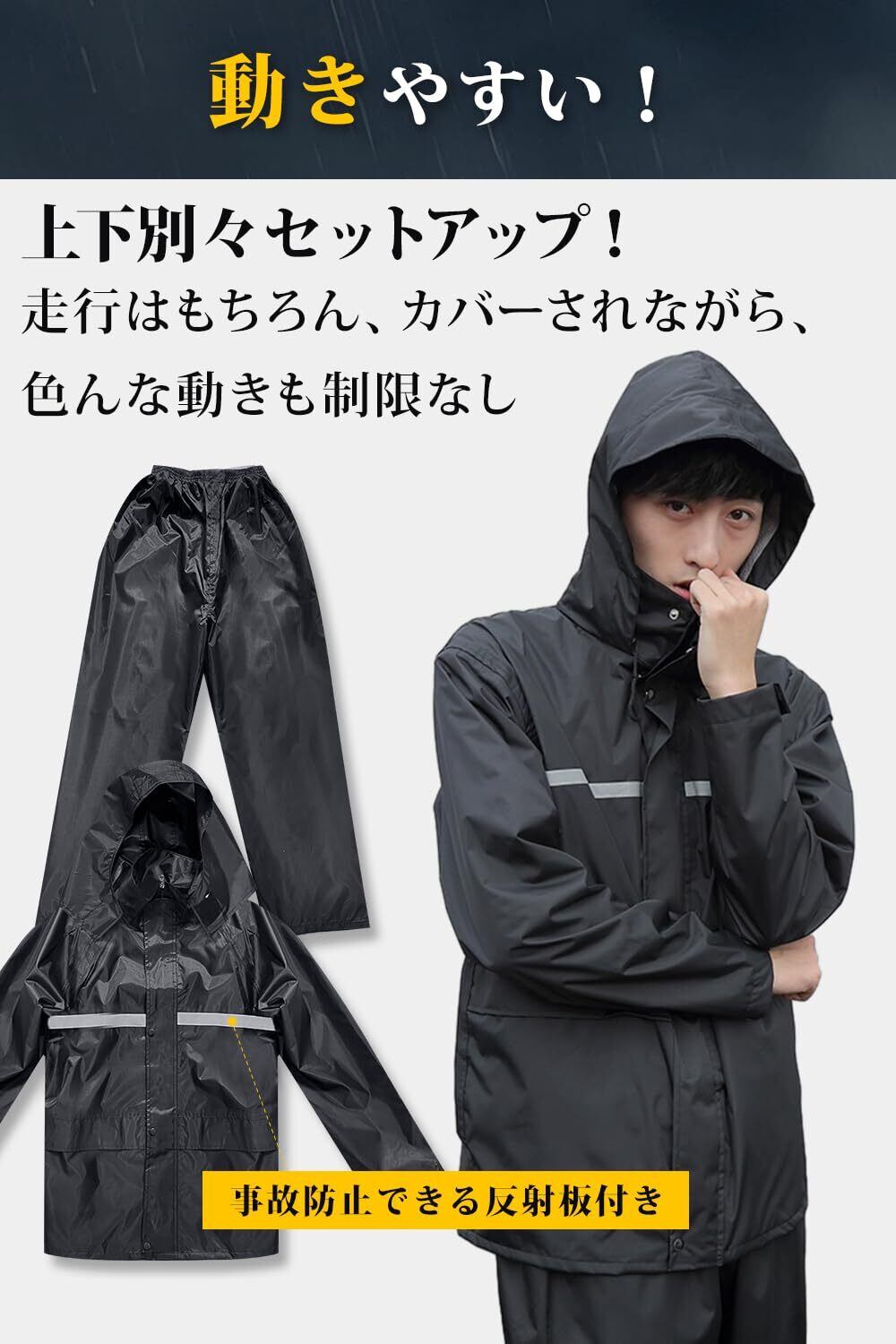 [Tanoka] レインコート 上下 セット レインウェア メンズ レディース 雨合羽 レインスーツ アウトドア 通気メッシュ 超防水 透湿度アップ 防水 撥水 バイク用 レインウェア 梅雨対策 バイク 自転車 通学 通勤用 登山 男女兼用 雨具 収納袋付き