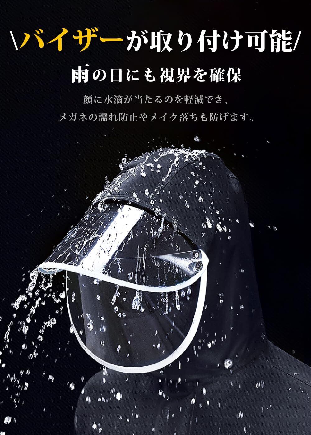 【超防水&高撥水加工|急な雨でも安心】 レインコート には高密度ポリエステル生地に防水コーティングを施し、さらに表面には撥水加工をプラス。縫い目には止水テープ加工を施し、激しい雨にも耐える高い防水性能を実現。レディース 、メンズ にかかわらず梅雨や台風シーズンの通勤・通学、アウトドア活動にも最適な雨合羽です。