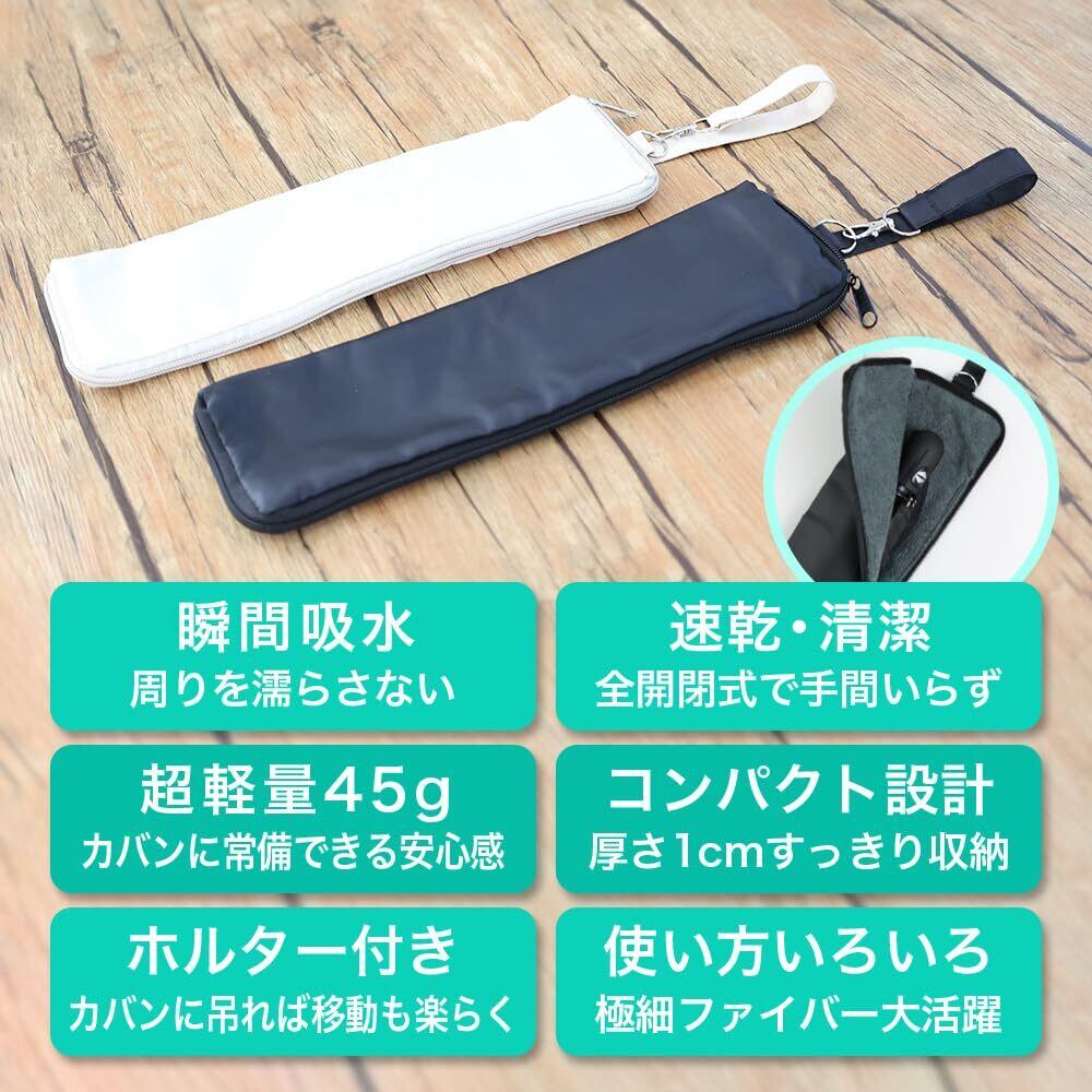 【吸水 防水 速乾 超軽量45g マルチ 折り畳み傘カバー 】 傘ケース 折りたたみ傘用 携帯用 マイクロファイバー 傘袋 通勤 通学 泥跳ね 汚れ拭き 多用途 便利 傘用カバー [Angel's Closet] (オフホワイト)