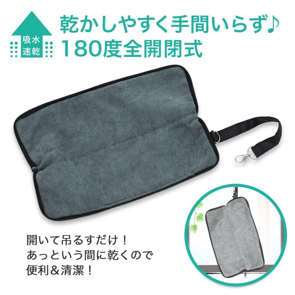 【多用途クロスとして!いつでも どこでも サッと ひと拭き】内側の高機能マイクロファイバーは、吸水力はもちろん、汚れ拭きにも最適!全開閉式なので ひっくり返せば多用途クロスに早変わり!カバンの水滴、泥跳ね、車の中やミラー等など、常備しておけば様々なシーンで重宝します