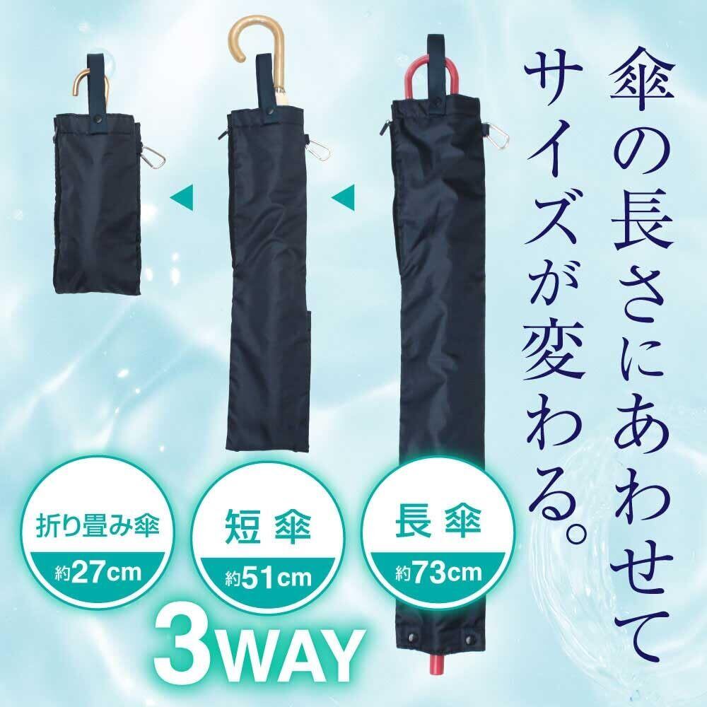 【3WAY 対応】さまざまな傘にフレキシブル対応! 長傘、折り畳み傘、日傘など、サイズやタイプに関わらず収納可能な便利 折り畳み式の折り畳み傘袋です。サイズを調整することで緊密に固定し、傘ががたつくことなく持ち運びできます。