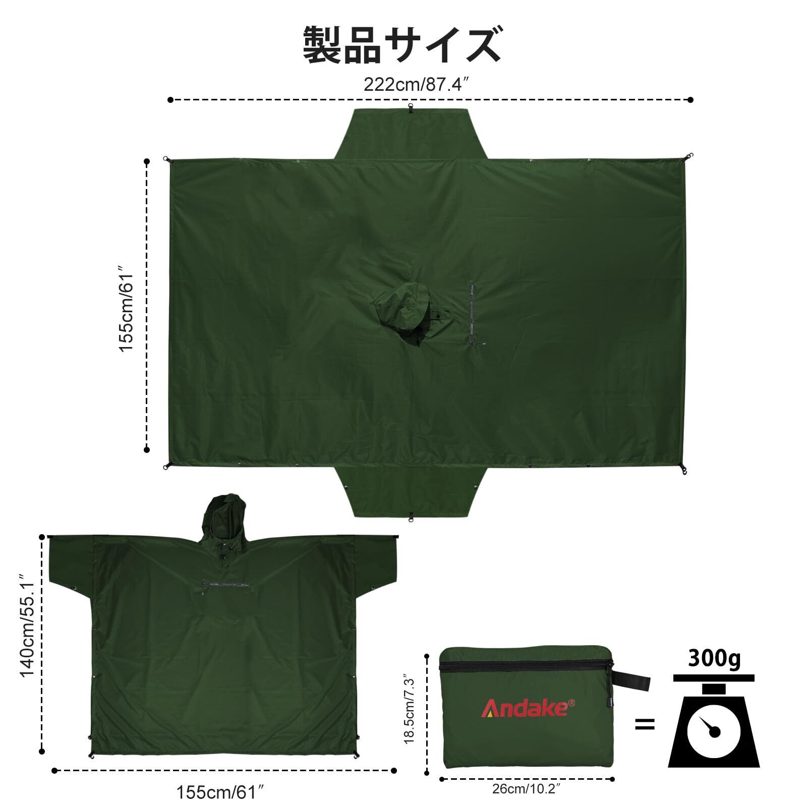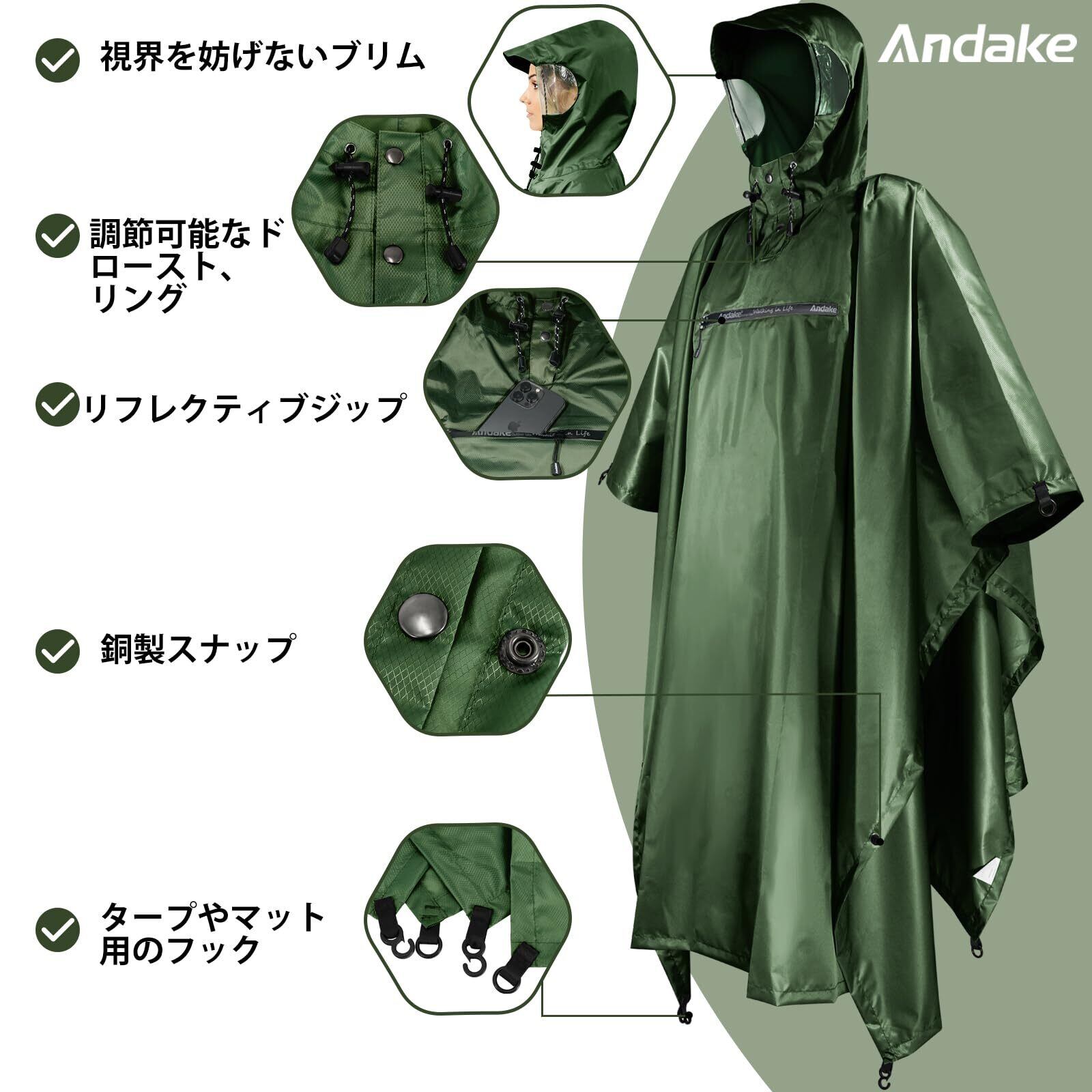 [Andake] レインコート 折り畳み レインポンチョ 男女兼用 撥水 防風 耐久性 カッパ メンズ レディース 通学 通勤 自転車用 レインウェア リュック対応 梅雨対策 収納袋付き