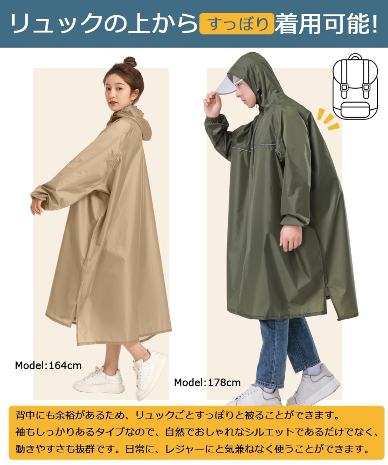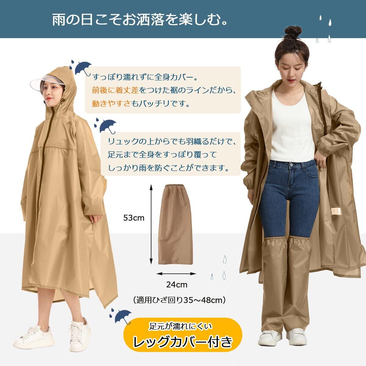 BUQIREN レインコート 自転車 レディース メンズ 軽量 快適 レインポンチョおしゃれ レインウェア ロング丈 かわいい リュックにも対応 防水 通学 通勤 保育園の送迎 カッパ 雨具 収納袋付き