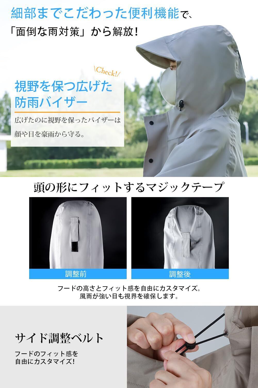 ②【雨水を完全ブロック!プロ級の防水設計】 伸縮袖口&立体裾で自転車通勤も安心 二重カバー付き防水ジッパーで雨水侵入ゼロ 広いつば付きフードで顔周りをガード 雨が横殴りでも中までしっかり乾いた状態をキープ!