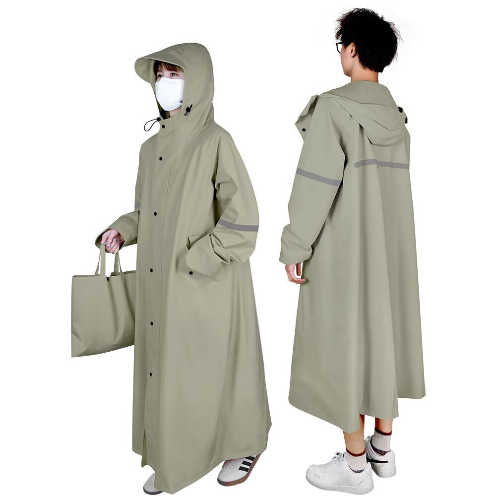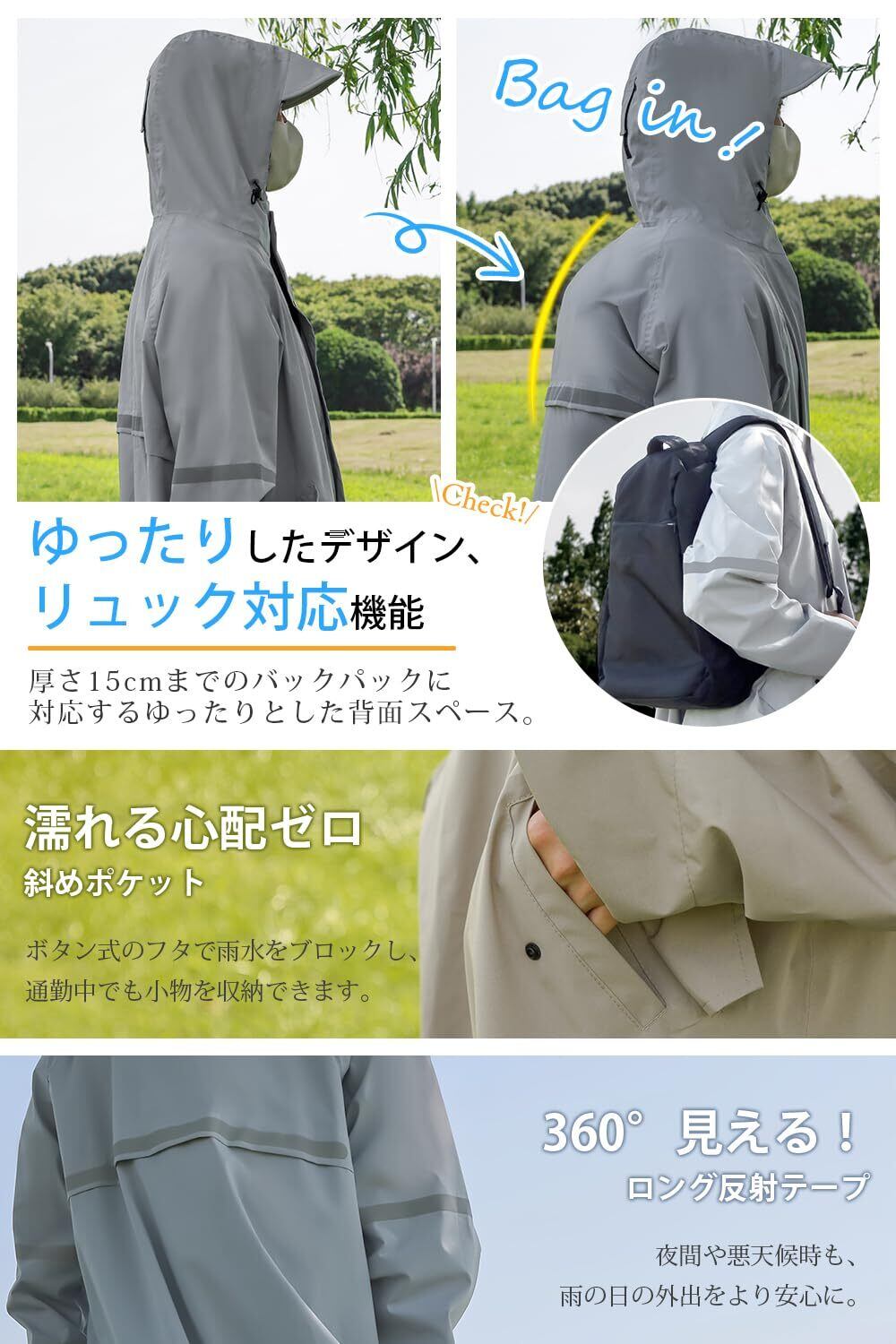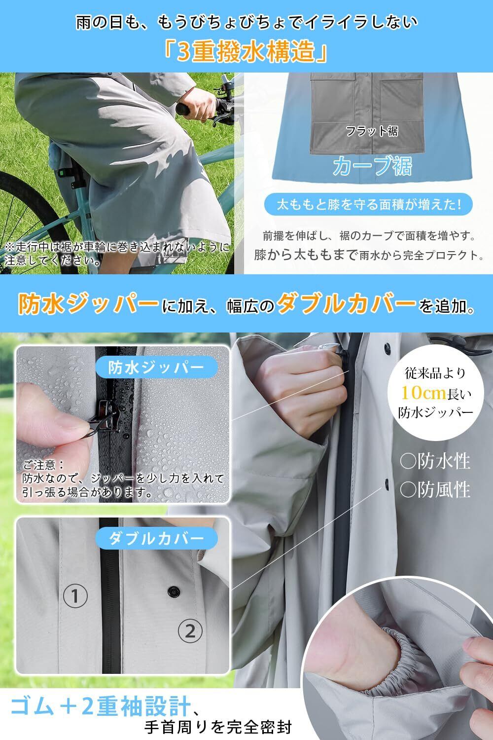 ③【自転車&リュックにも対応!便利なゆとり設計】 裾を広げれば自転車のペダルを漕いでも膝が濡れない!バックパックを背負ったままでも楽に着られ、360°反射テープで夜道も安全。通勤ユーザーに嬉しい工夫がいっぱいです。