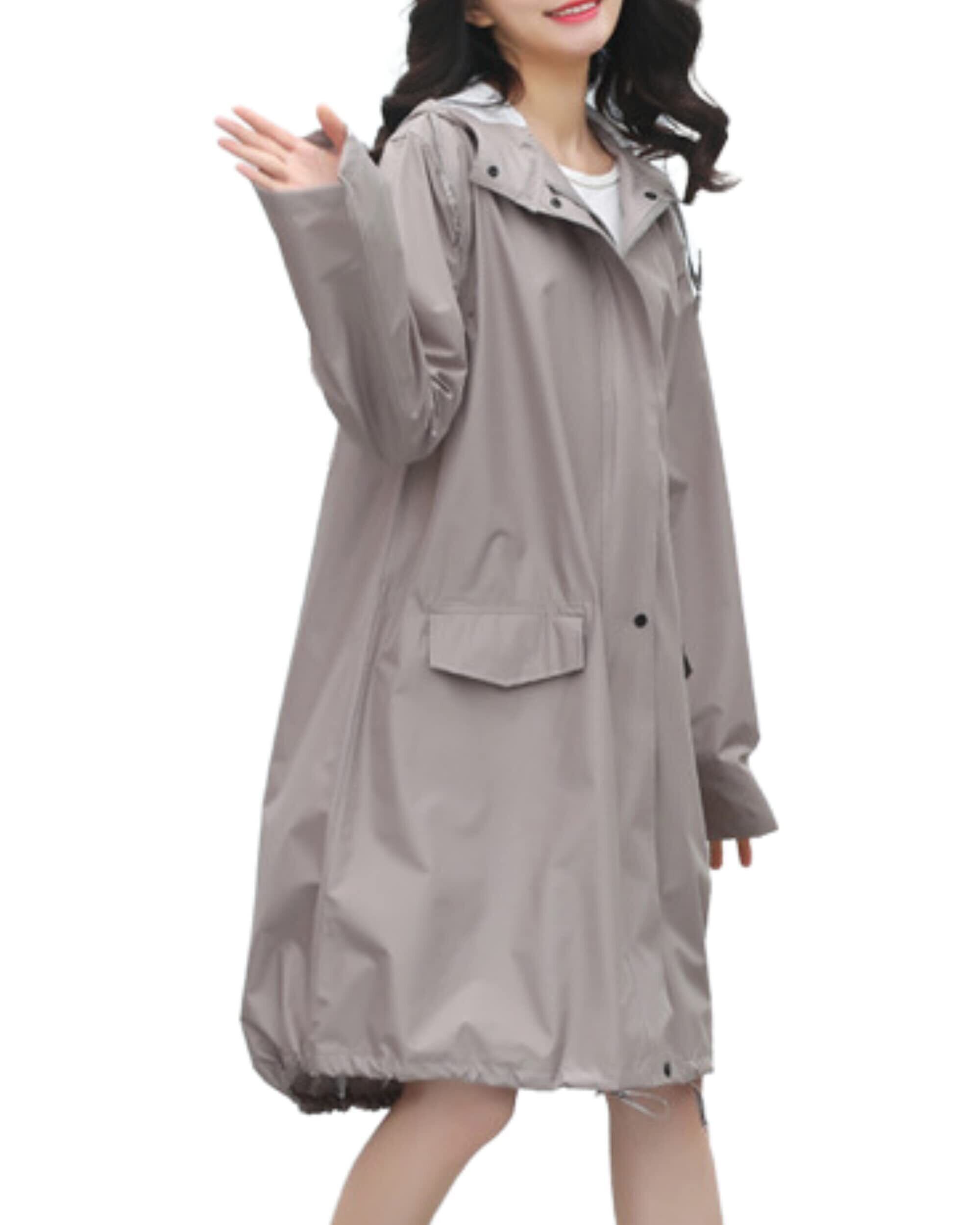 【選べる着丈2種類】膝丈とロング丈の2種類からお選びいただけます。※ロング丈は+9cm! 普段のコーディネートに馴染むシンプルで可愛いフード付きレインコート。雨の日の通勤通学もおしゃれに