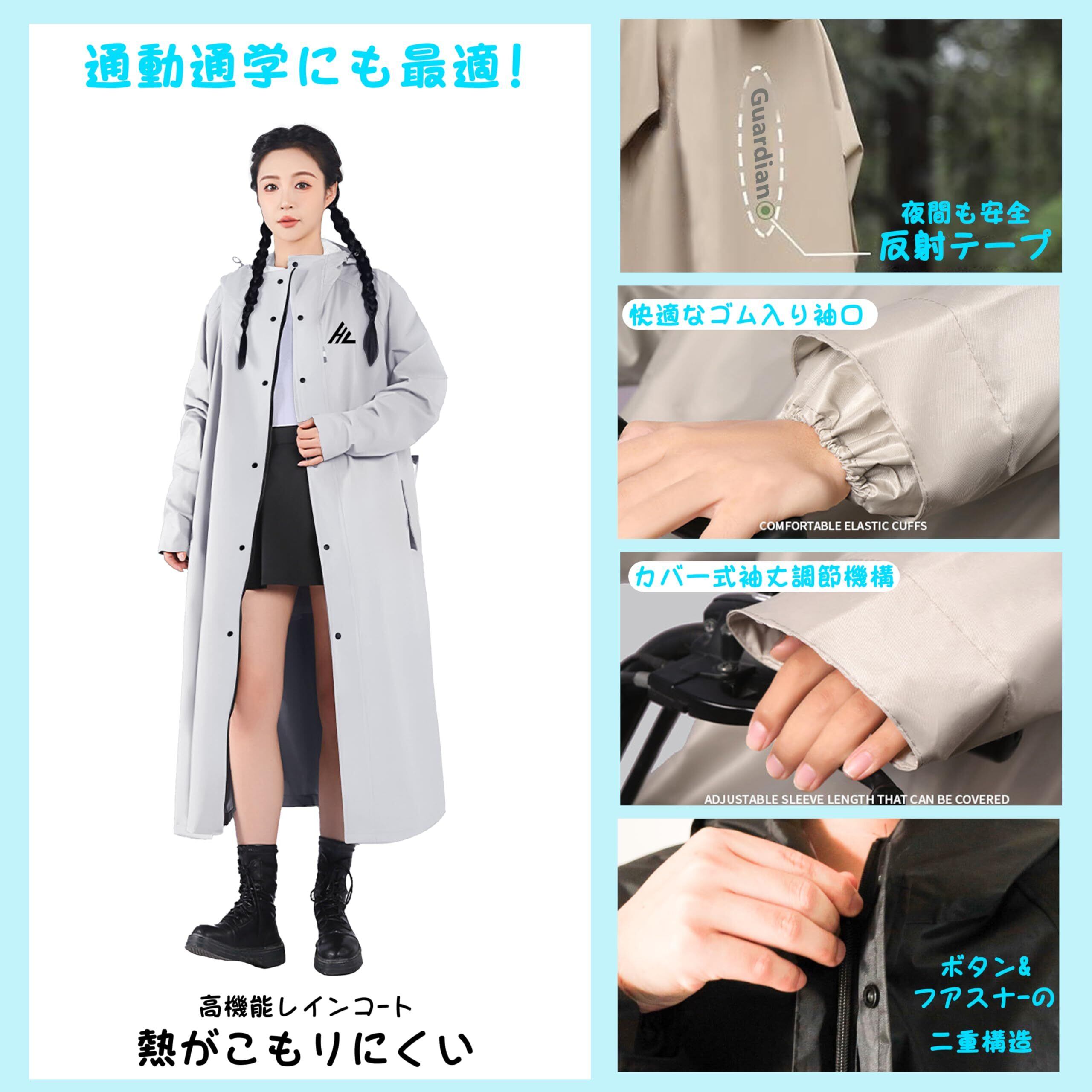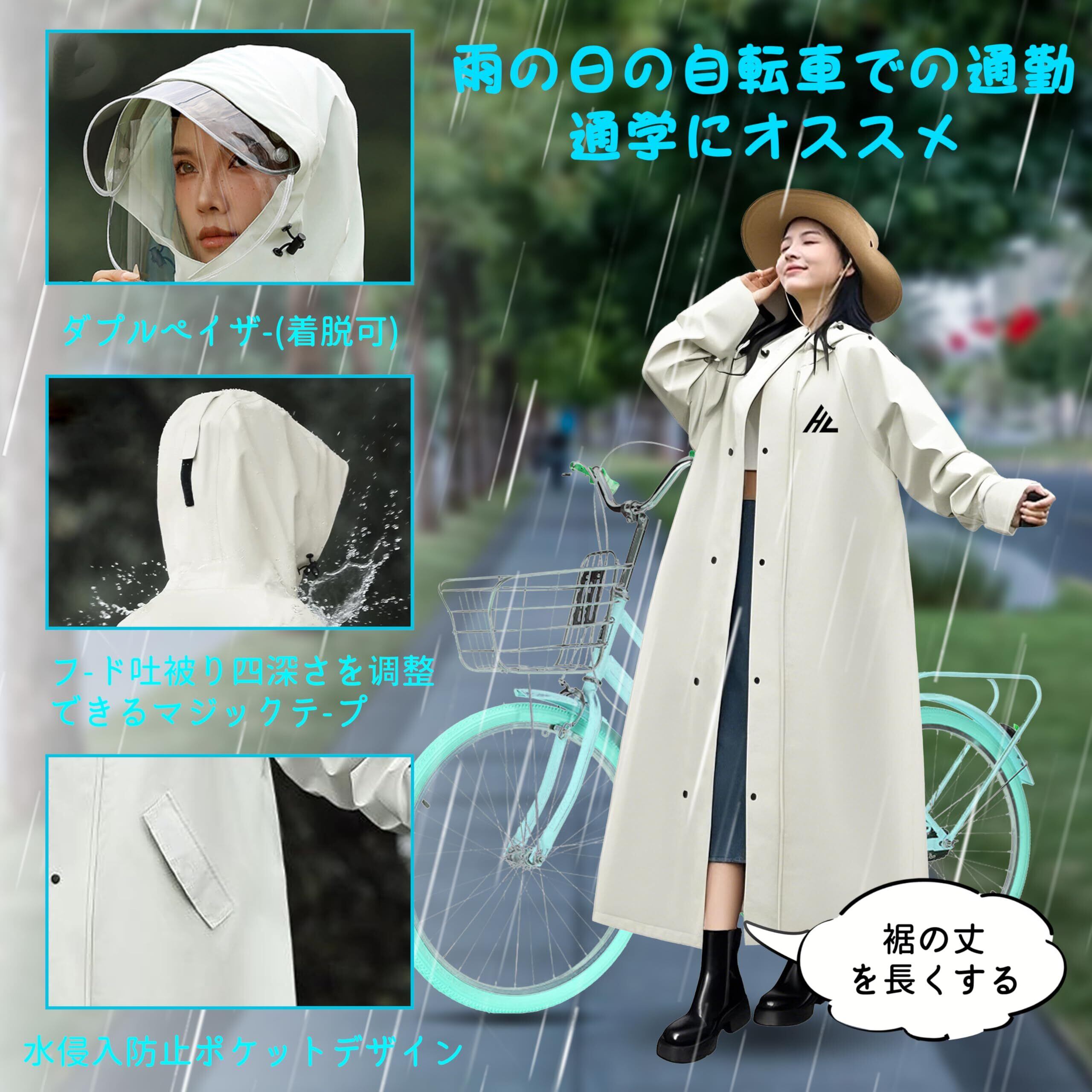 [Kaniya] レインコート 自転車 大きいサイズ リュック対応 ロング丈のおしゃれな レインポンチョ 軽量 通勤通学 防風防水 梅雨対策 豪雨対応 男女兼用 収納袋付き