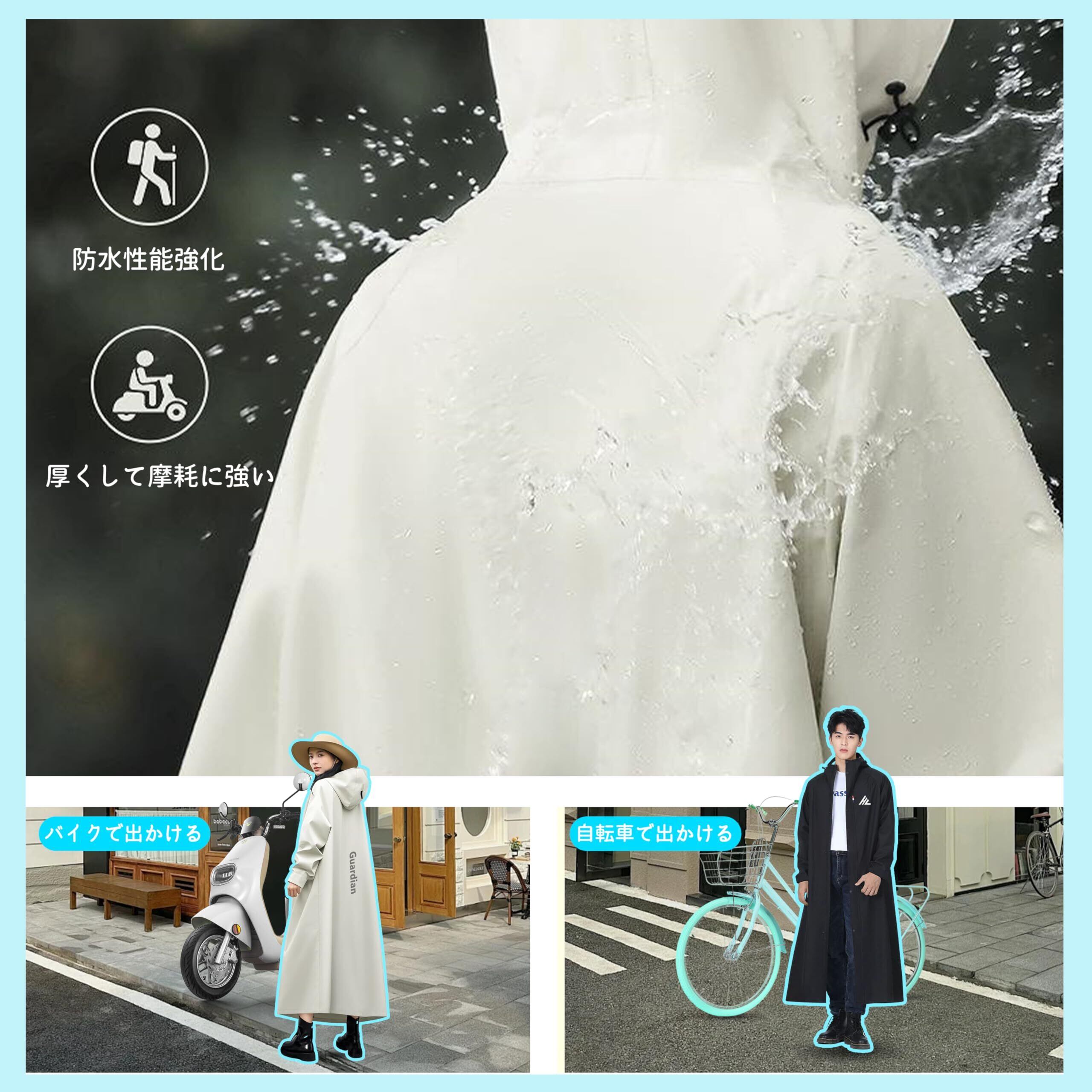 【環境に優しい新防水素材】自転車用レインコートは環境に優しい新防水素材を採用しており、無味無臭で着心地も快適です。強力な防水性能、丈夫で耐久性があります。また、フロントのダブルジッパーとボタンのデザインにより、水や風の侵入を防ぎ、大雨を心配することなく、旅行、アウトドア、レジャーなどでも安心してご使用いただけます。持ち運びに便利な収納バッグが付属しており、突然の雨などに備えてコンパクトに折りたたんで自宅やオフィス、車内に保管できます。