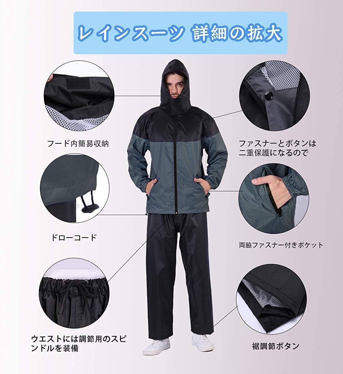 [Vialifer] レインスーツ メンズ レインスーツ 上下セット レインコート レインウェア レディース 防水 撥水 透湿 雨カッパ 雨具 自転車 バイク用レインジャケット アウトドア 通学 通勤 収納袋付き