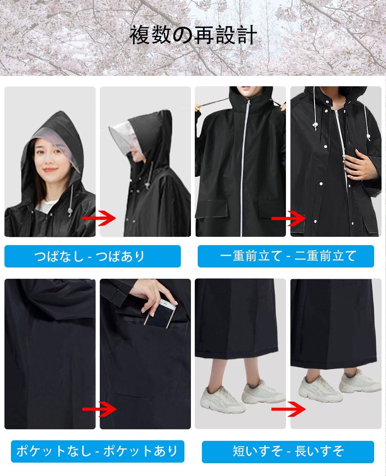 【快適通気、柔らかくて体とフィット】人体の標準身長と体型に基づいて設計され、完璧に服装規範と一致でき、着用心地が良くて体とぴったり、スタイルリッシュで、ぶくぶくに見えません。EVA素材自体の柔軟性で、人の動きに全く邪魔になりません。アウトドア旅行、山登り徒歩、通学や通勤など様々なシーンで幅広く活躍しているレインウェアです。