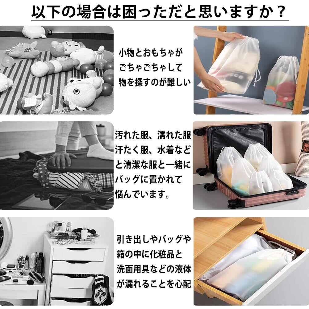 Futakuchi ビニール 巾着袋 セット-防水 収納袋 旅行用 ポーチ 濡れた服 水着 収納ポーチ 防塵 靴袋 撥水 温泉バッグ ビニールポーチ 巾着ポーチ トラベルポーチ 旅行 ポーチ