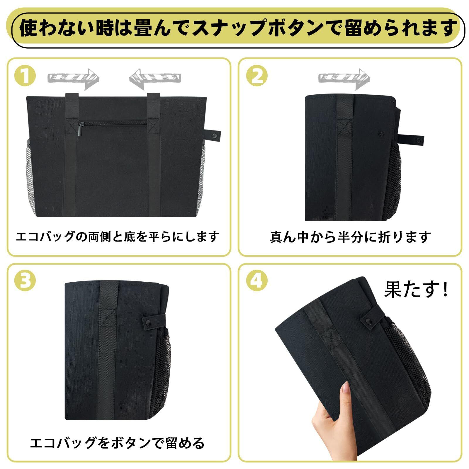 【折りたたみ式】買い物袋高品質のハンドルを使用し、エコバッグを手で持ったり、肩に掛けたりできるよう、ハンドルを長くし、耐荷重性を向上させました。使わない時は、エコバッグを半分に折ってボタンを留めるだけで、簡単にコンパクトに持ち運べます。車に置きっぱなしにしたり、家のちょっとした隙間に収納できます。