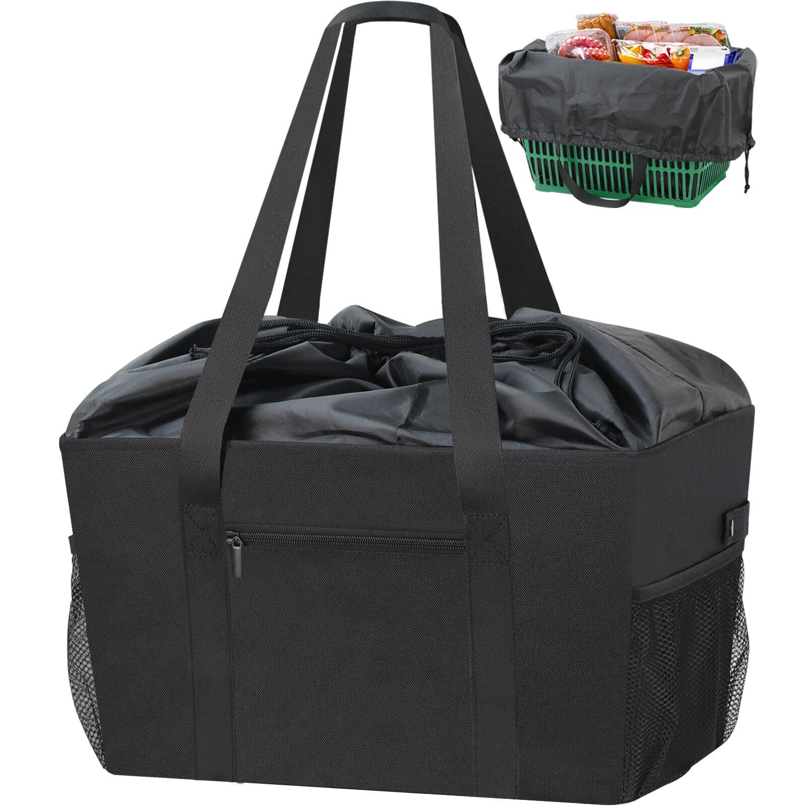 【レジかごサイズ買い物バッグ】買い物カゴサイズの大容量ショッピングバッグ。買い物バッグのサイズは:42cm×22cm×26cm、標準的な買い物カゴにセットでき、移し替えの手間もなく、お会計の時点で袋詰めが完了します。お買い物やピクニックなど、通年で活躍できます。