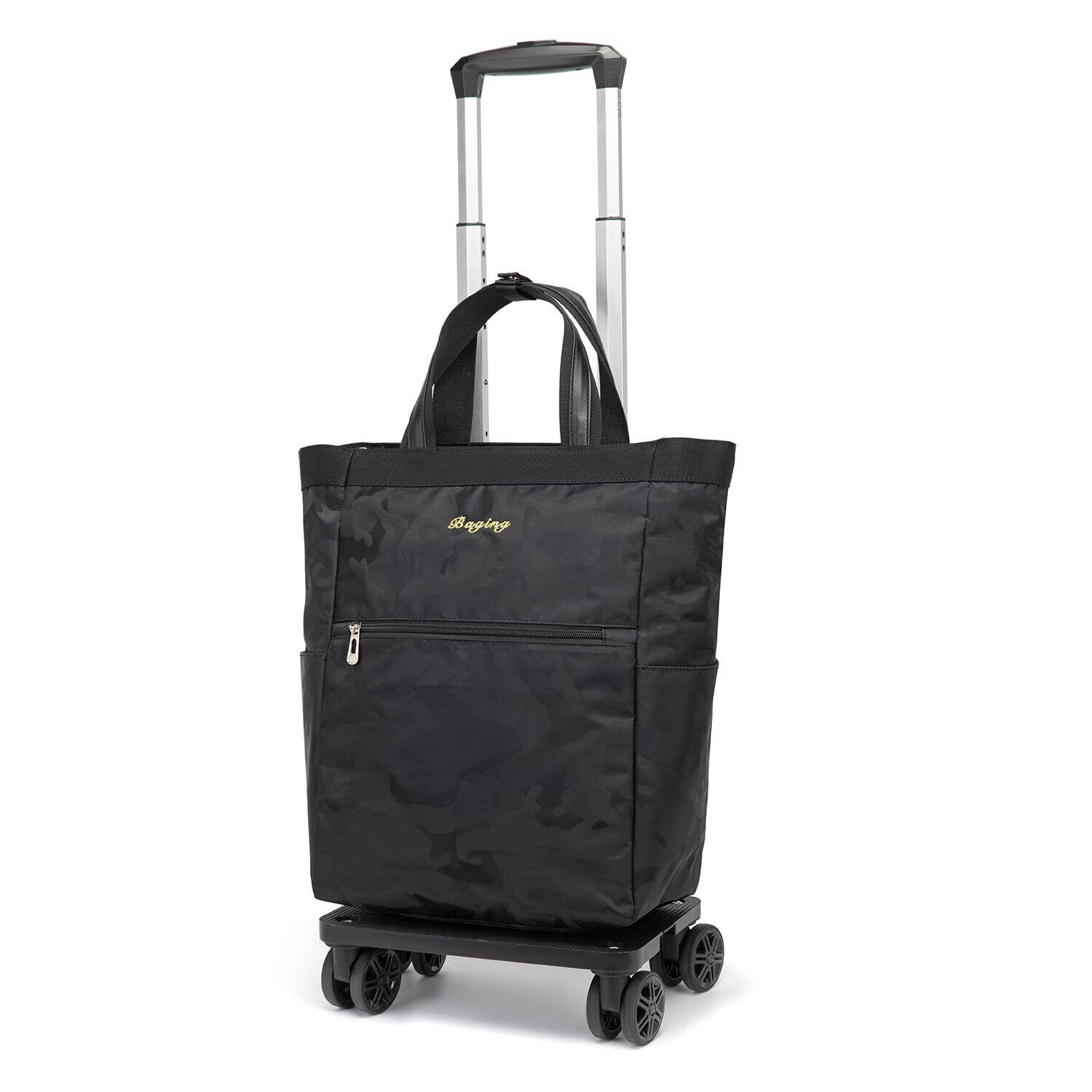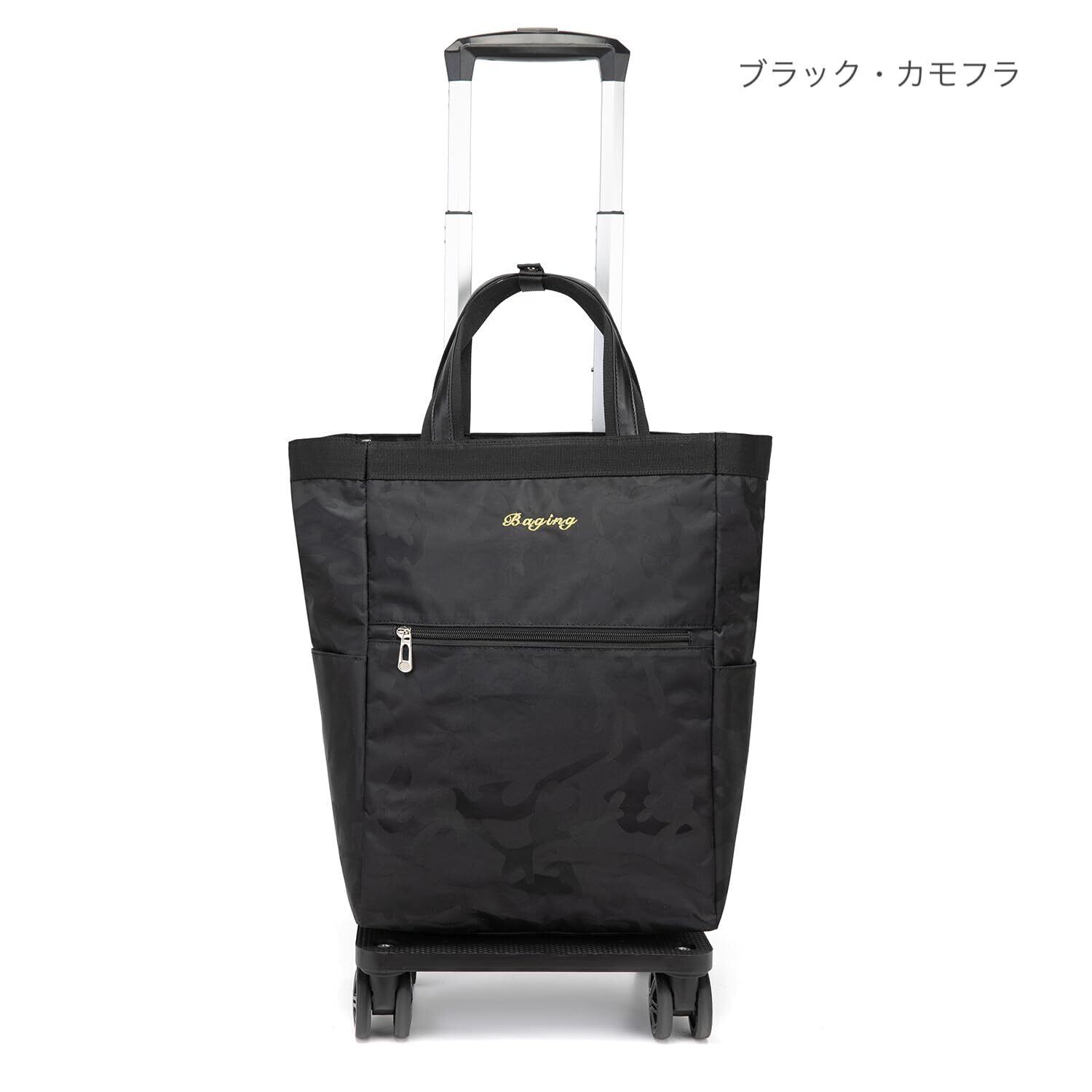 [神戸リベラル] バギング ショッピングキャリー 横押し 4輪ダブルキャスター 折り畳み 軽量 ショッピングカート キャスター交換可能 組み立て済み 601 (ブラックカモフラ)