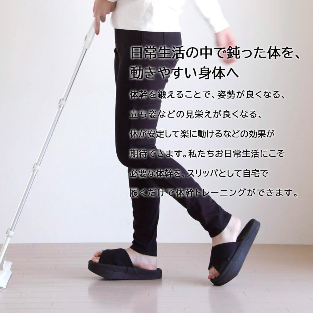 【体幹が鍛えられる室内用スリッパ】蒸れにくい前開きタイプ。履くだけで体幹トレーニングができるスリッパ「体幹を整えるスリッパ Sliet(スリエット) オープントゥ」。かかと重心で後ろに引っ張られる感覚に。