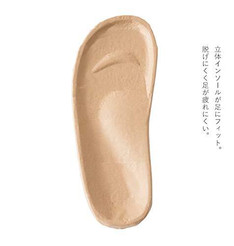 立体インソールが足にフィットし脱げにくく足が疲れにくい。かかとに弾力性があり軽量で快適な履き心地です。底面にはすべり止め付き。