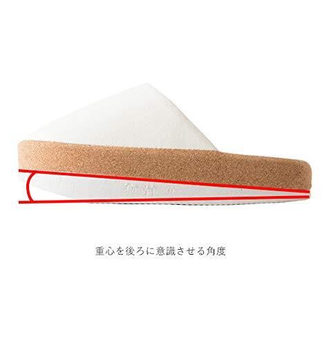 体の重心を後ろに意識させることで、下腹、ヒップ、ふくらはぎにキュッと力が入り、体幹が鍛えられ、体のラインを整えることができるスリッパです。