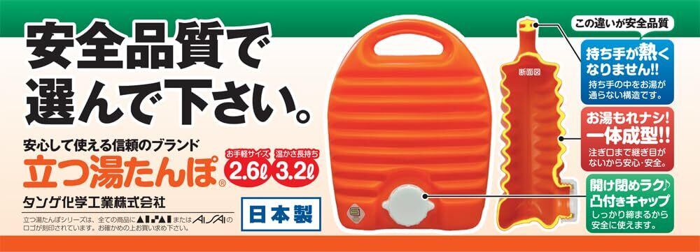 タンゲ化学工業 立つ湯たんぽ オレンジ 2.6L 袋付き TN00314