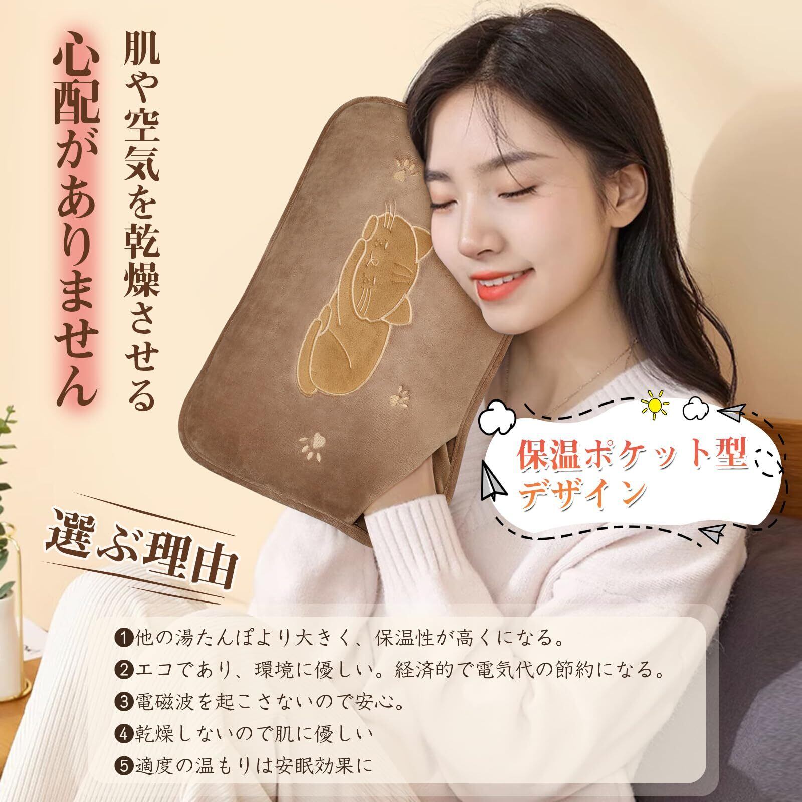 湯たんぽ ゆたんぽ 充電式【大きめサイズ&保温ポケットデザイン】湯タンポ エコ 4~12H長時間保温 省エネ ふわふわ保温カバー付 洗濯OK 防爆充電器 過熱防止機能 蓄熱式 電気湯たんぽ 繰り返し使用可 暖房器具 防寒 キャンプ 冷房対策 誕生日 ギフト 人気 クリスマス 祝い プレゼント 【PSE認証済み&METI経済省登録済み】 (ブラウン Lサイズ)