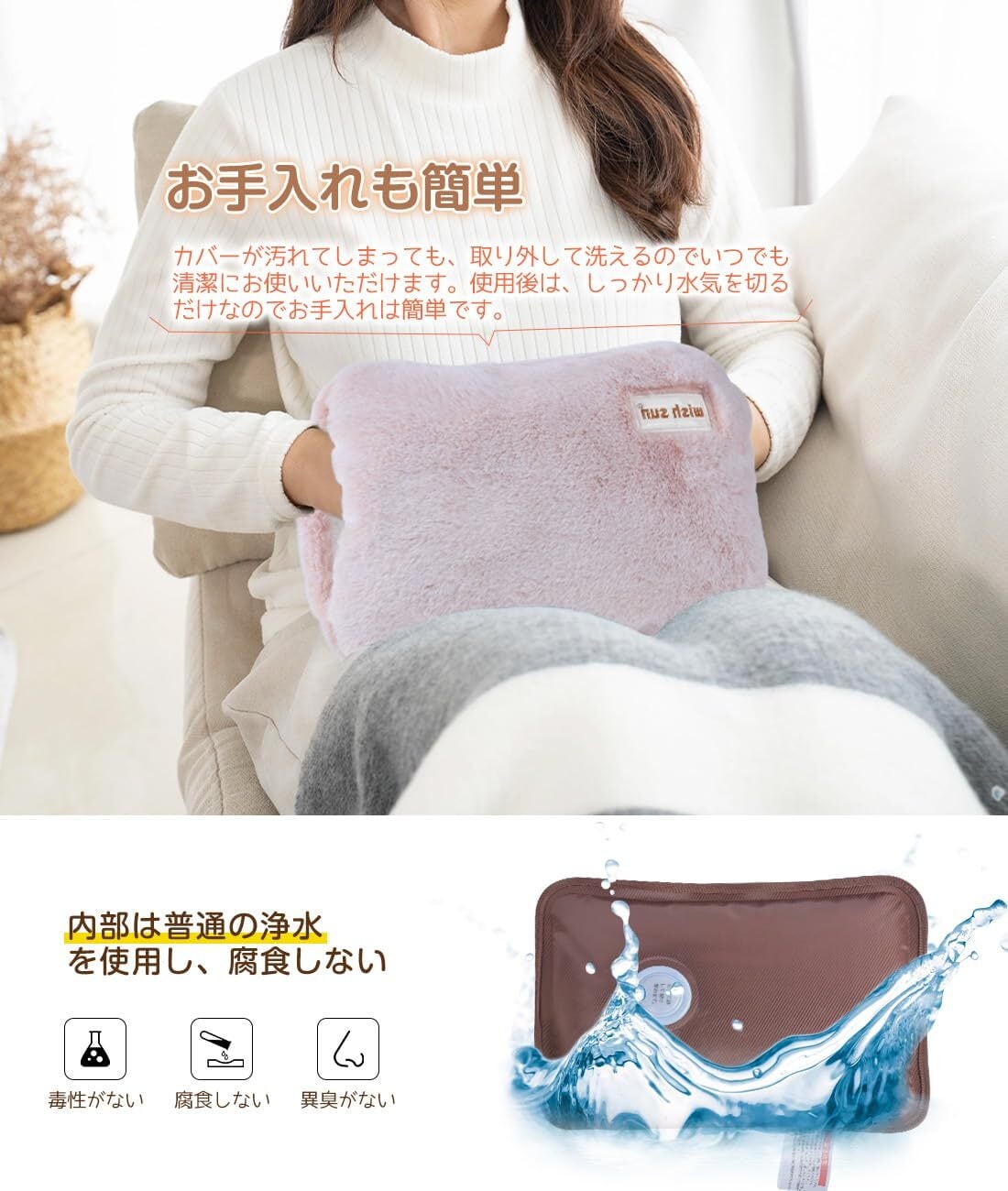 【充電式湯たんぽ-優しい肌触り&洗濯可カバー】保温カバーはふかふかな素材を使用しているので肌触りが心地よく、暖房器具のように室内の空気が乾燥せず、身体にも自然にもやさしい!低温やけどを防ぐため、専用カバーを付けることで、湯たんぽと併用することで保温性が高まり暖かな時間が延びます。カバーは取り外して洗濯することができるのでいつでも清潔を保ちます。