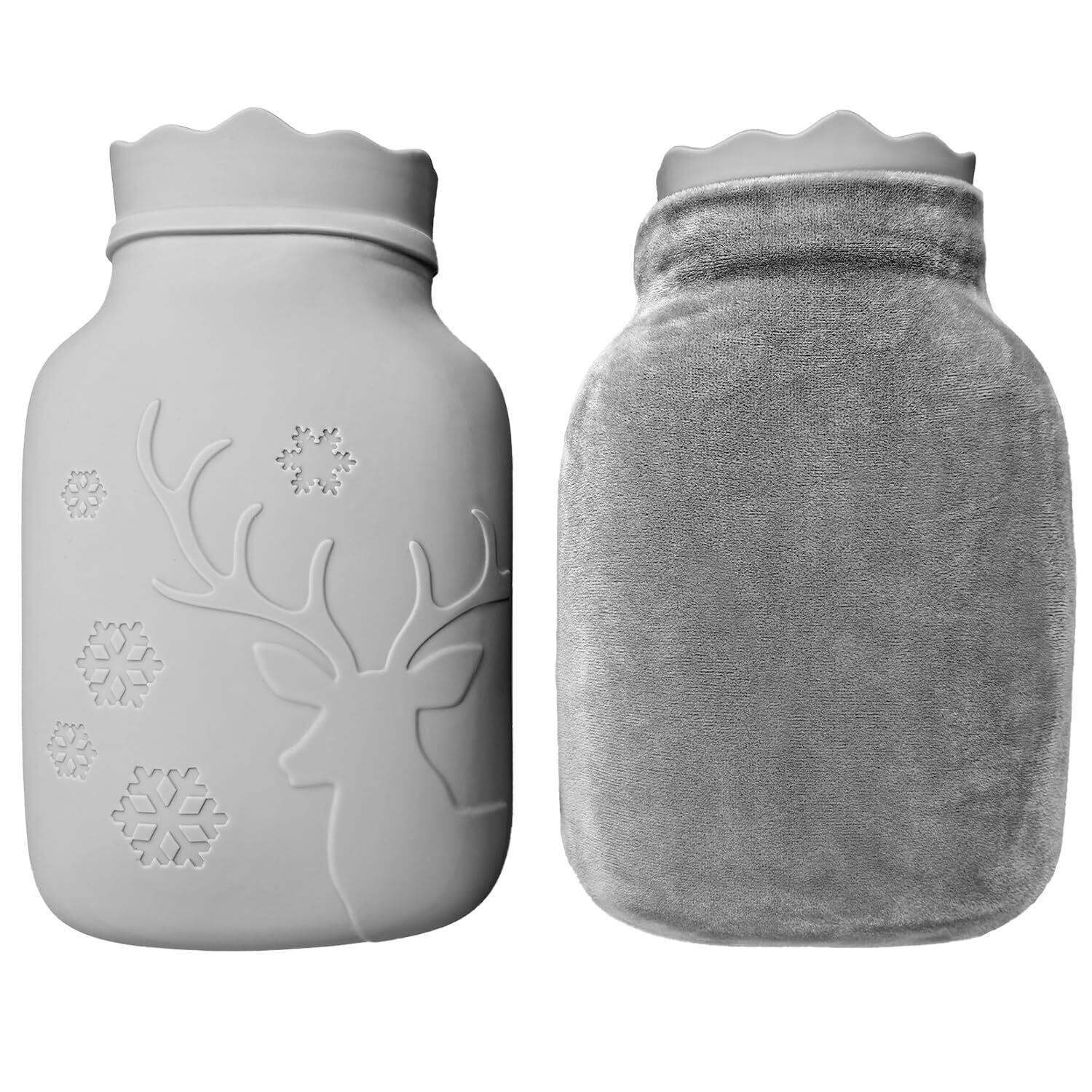 JEEYING シリコン湯たんぽ 大容量 1.1L 電子レンジ専用 柔らかく洗える 電気不要 保温カバー付き 防爆仕様 防寒グッズ 冷え性対策に効果的で、腰温めに最適 プレゼントにも適しています 生理期中も大活躍 (ヘラジカのパターン)