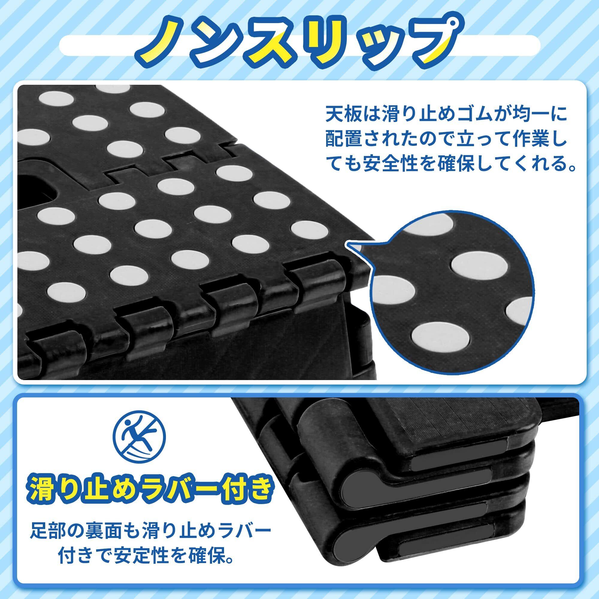 【100kgの超耐荷重】軽量ながらも頑丈な設計で、最大100kgの重量に耐えることができます。洗車やキャンプ、キッチンの高所作業など、様々なシーンで活躍してくれる頼れる踏み台です。