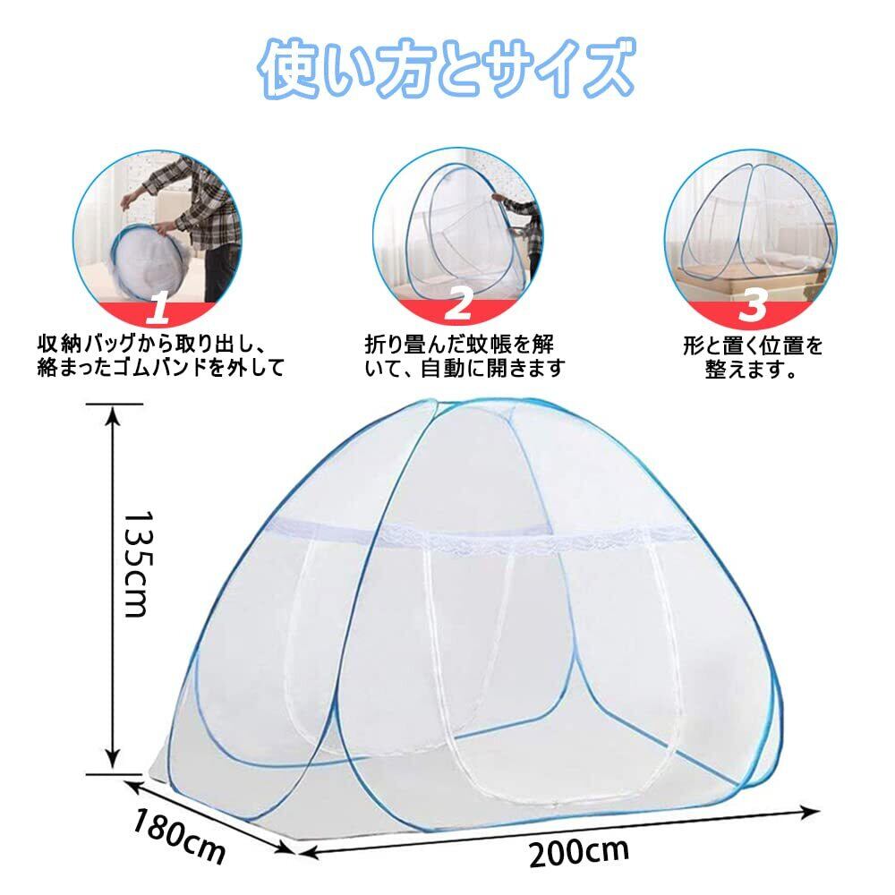 DEWEL 蚊帳 ワンタッチ テント式 幅180cm 底付き 防虫 シングル 折りたたみ可能 収納便利 キャンプ アウトドア ベッド用 ムカデ対策 高密度メッシュ 洗濯可能 ブルー 180x200x135cm