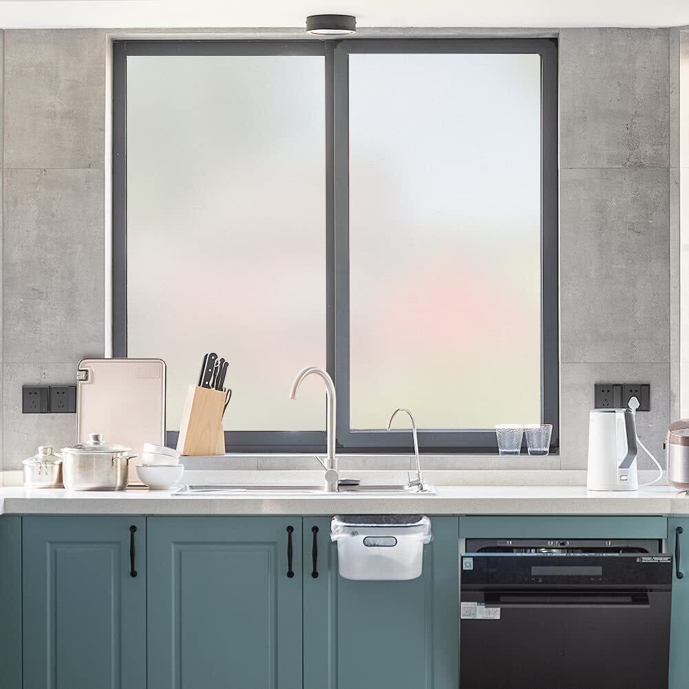 【目隠し、プライバシー保護】⇒ 窓 フィルム 20cm以上離れていれば、天気や昼夜を問わず、室内が見えにくいです。外からの視線を遮りながら、かつ、充分に外の光を室内に取り込めます。明るさを保つと共に視線遮断:室内の採光もよく取れるだけではなく、昼でも夜間でもしっかりとプライバシーを守り、カーテンで暗すぎる部屋の閉塞感や窮屈感から解放し、明るくて心地よいお部屋になります。透明窓ガラスをくもりガラスにできるお手軽シートです。防水機能付きますので、浴室、キッチンなどの滑らかなガラス表面にも適用です。