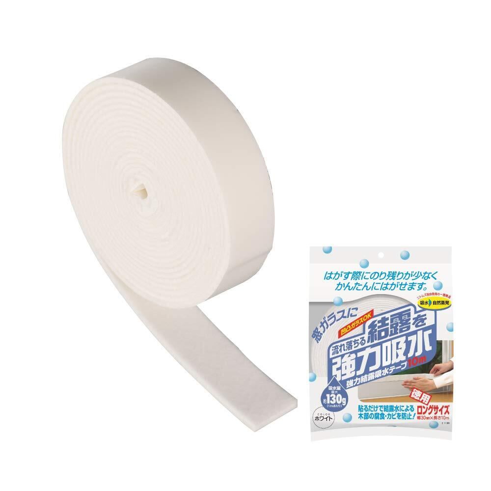 ニトムズ 強力 結露 吸水テープ 10M ホワイト 徳用ロング カビ防止 窓ガラス 貼るだけ リビング 寝室 幅3cm×長さ10m 1巻入 E1130