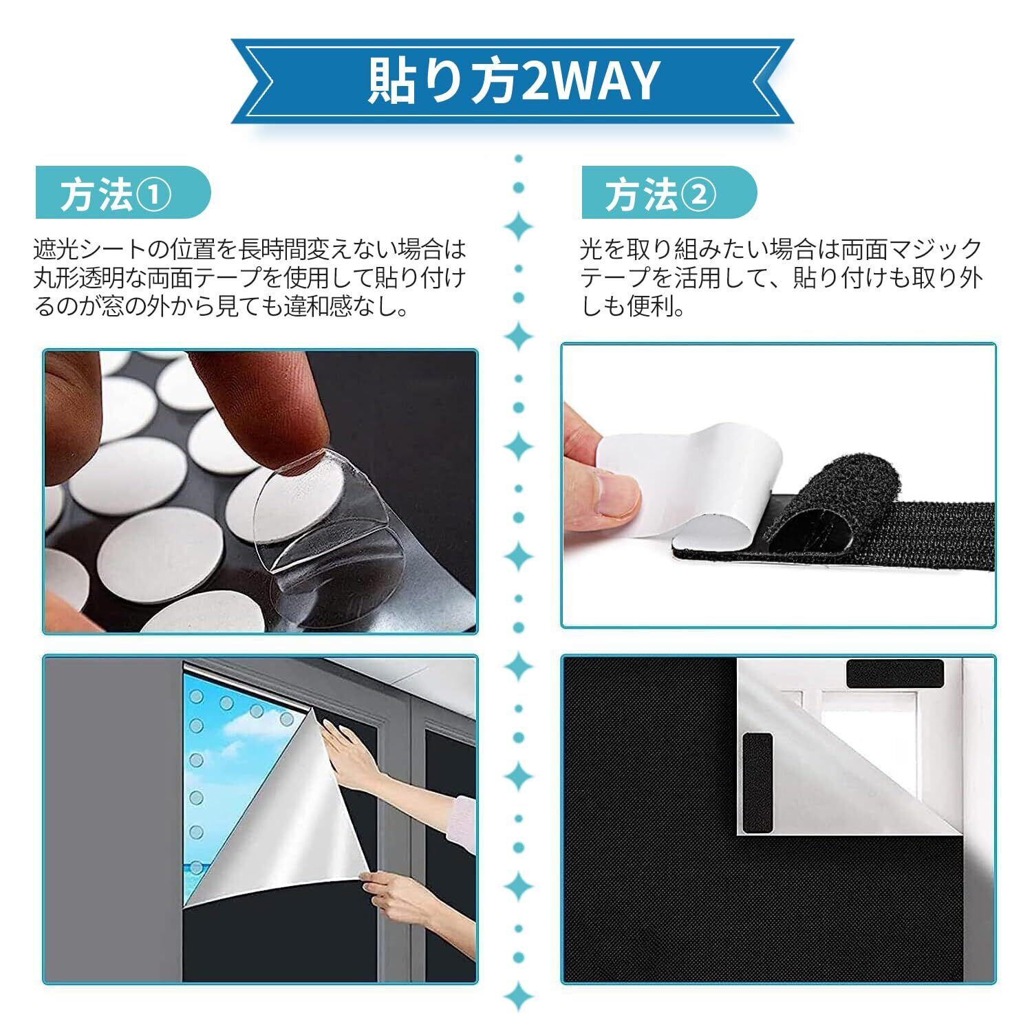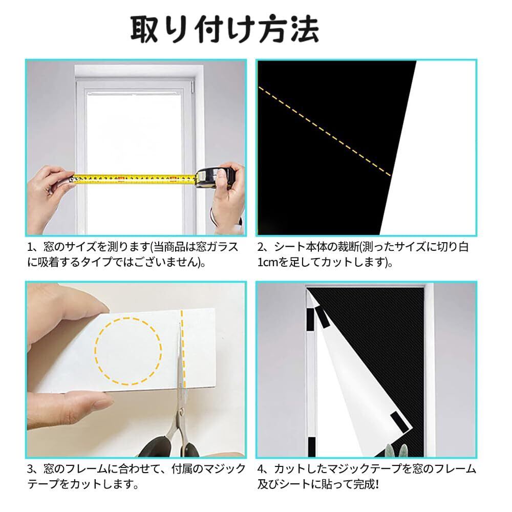 【取り付けはもっと便利に】水不要・技術不要・貼り直し不要。付属のマジック両面テープが付いて、どんな窓にも簡単に貼り付けることができます。窓のサイズを測って、必要な分だけ裁断したら何度も繰り返し使えます。