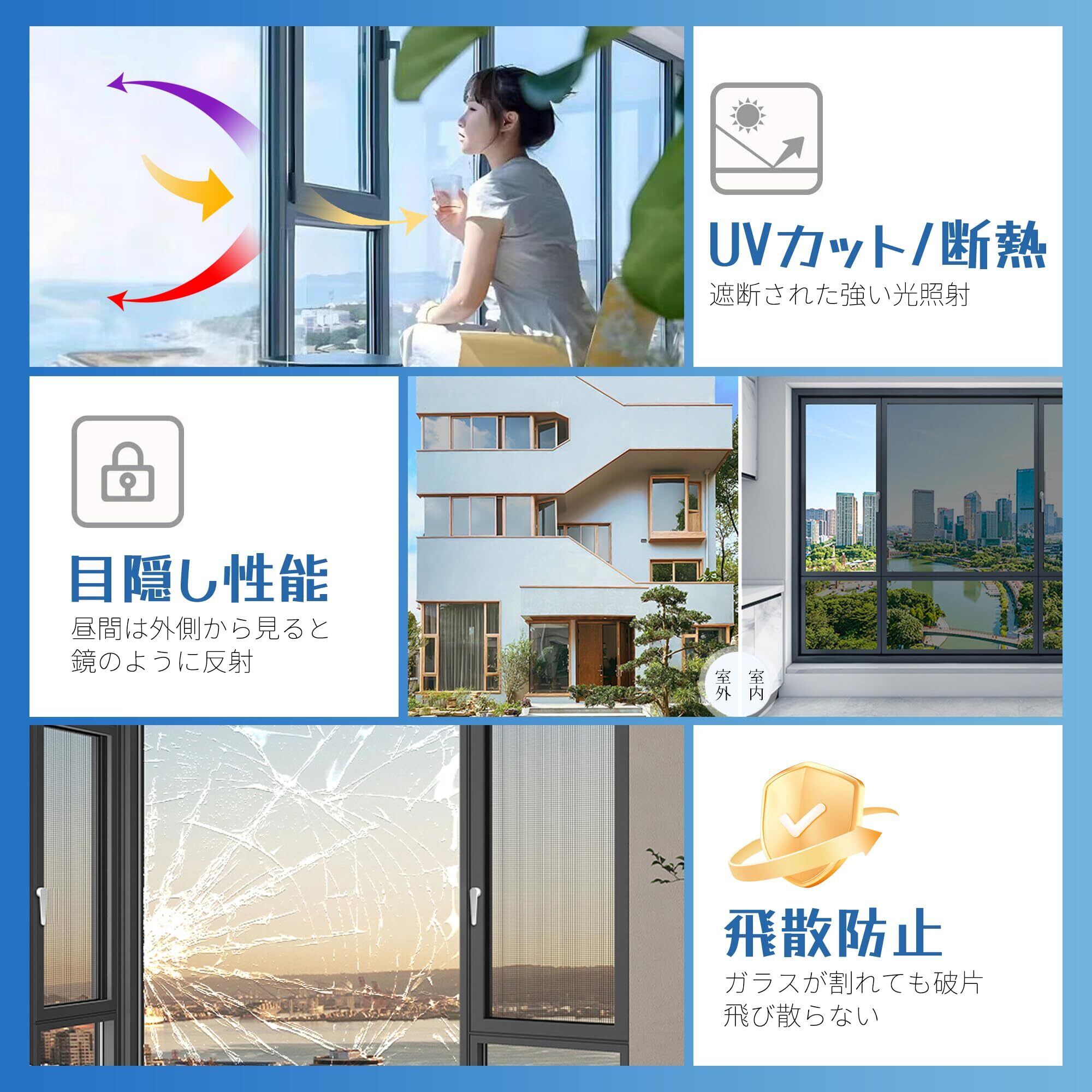 【2025夏・断熱uvカット強化】 窓 断熱 シート 遮光 ガラスフィルム マジックミラー 目隠しシート 紫外線 uvカット 飛散防止フィルム 防犯 日差し対策 結露防止 めかくしシート 台風対策 防災 がらす保護(シルバー 44CM*2M)