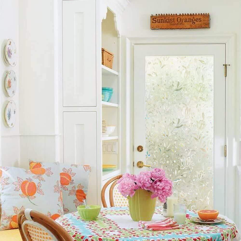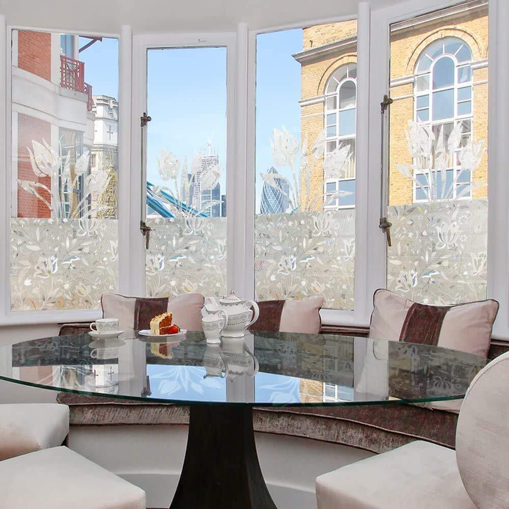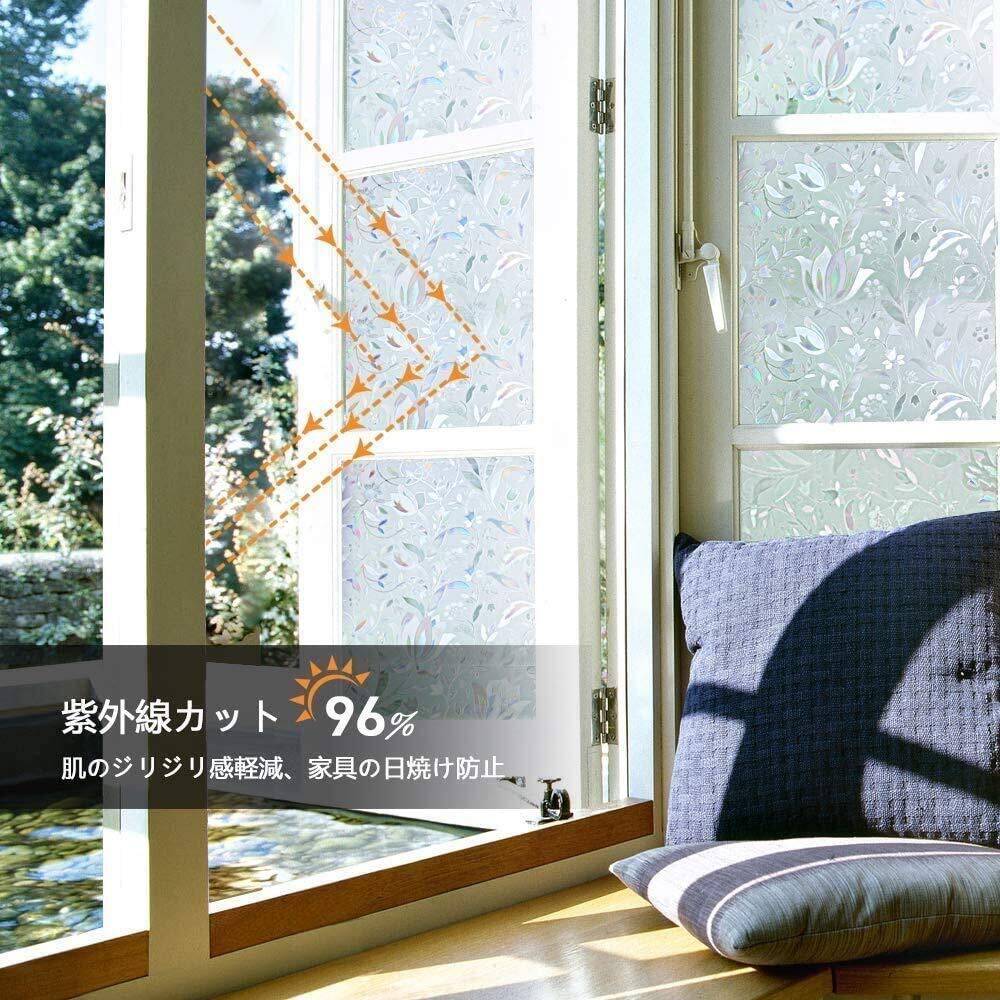 【簡単貼り付ける窓用フィルム】ツルツルのガラス面に適用。水だけで貼り付け、何度でも貼り直しOK!静電気で吸着され、落ちにくいです。接着材なし、剥がしても跡残らず、賃貸ok!