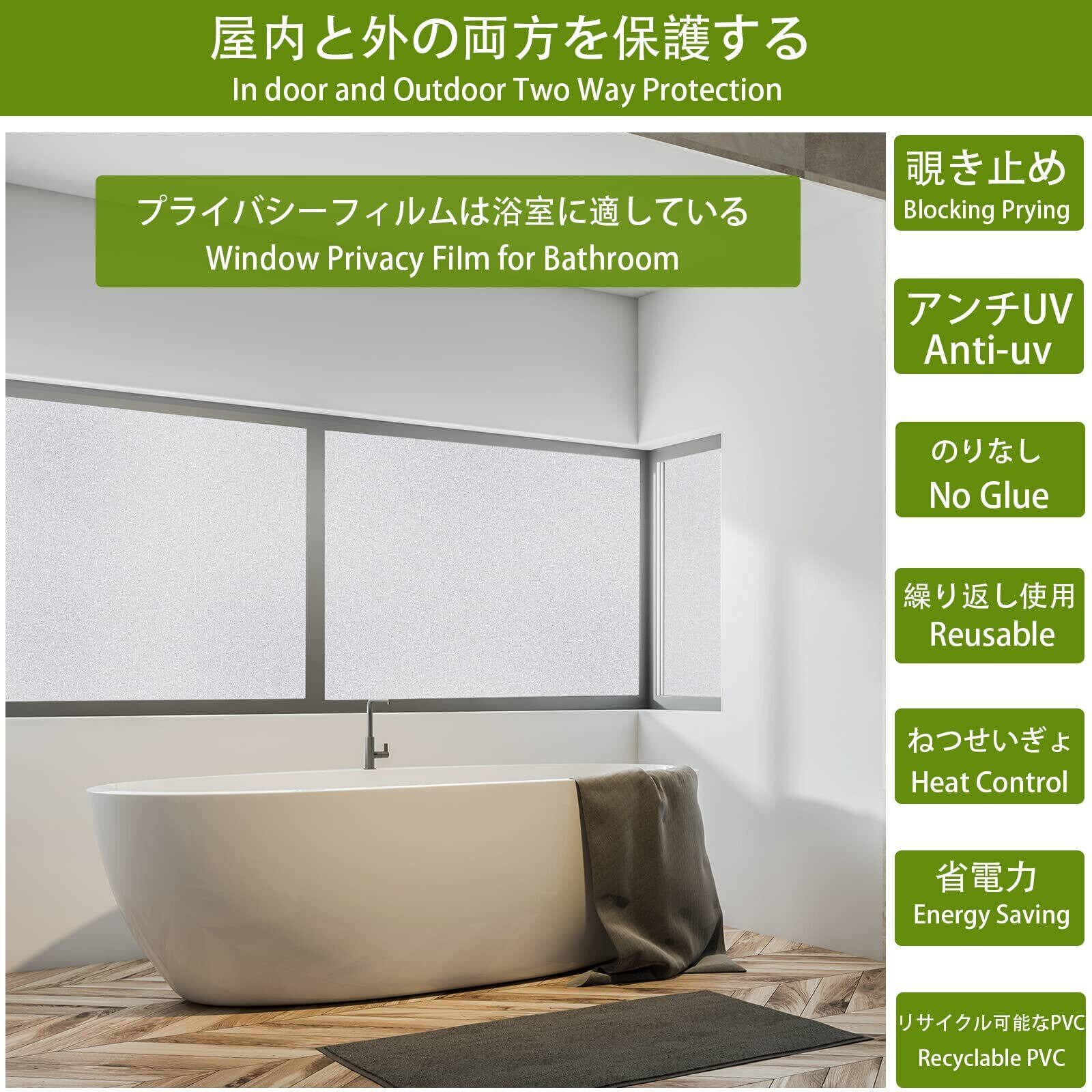 【窓フィルム--水だけで貼り、貼りやすくて繰り返し使用可能】この曇りガラスシート 接着剤不要(静電気吸着)なので、水だけで貼り付け、貼り直しOK!しかも何度でも貼ってはがせる再利用可能、長年にわたって、使用できるエコアイテムです。初心者でもきれいに貼れます。接着剤・糊やテープを使わずに静電気の力で吸着するので、手で簡単にはがせ、剥がした時「跡」が残りません。【ご注意】●必ずガラスフィルムについた保護フィルム(不要なフィルム)を剥してください。この手順をスキップすると、貼ったガラスフィルムが剥がれ落ちてしまうので、ご注意くださいませ。●任意の滑らかな表面に適用できます。粗いまたは多孔性の表面には適用されません。