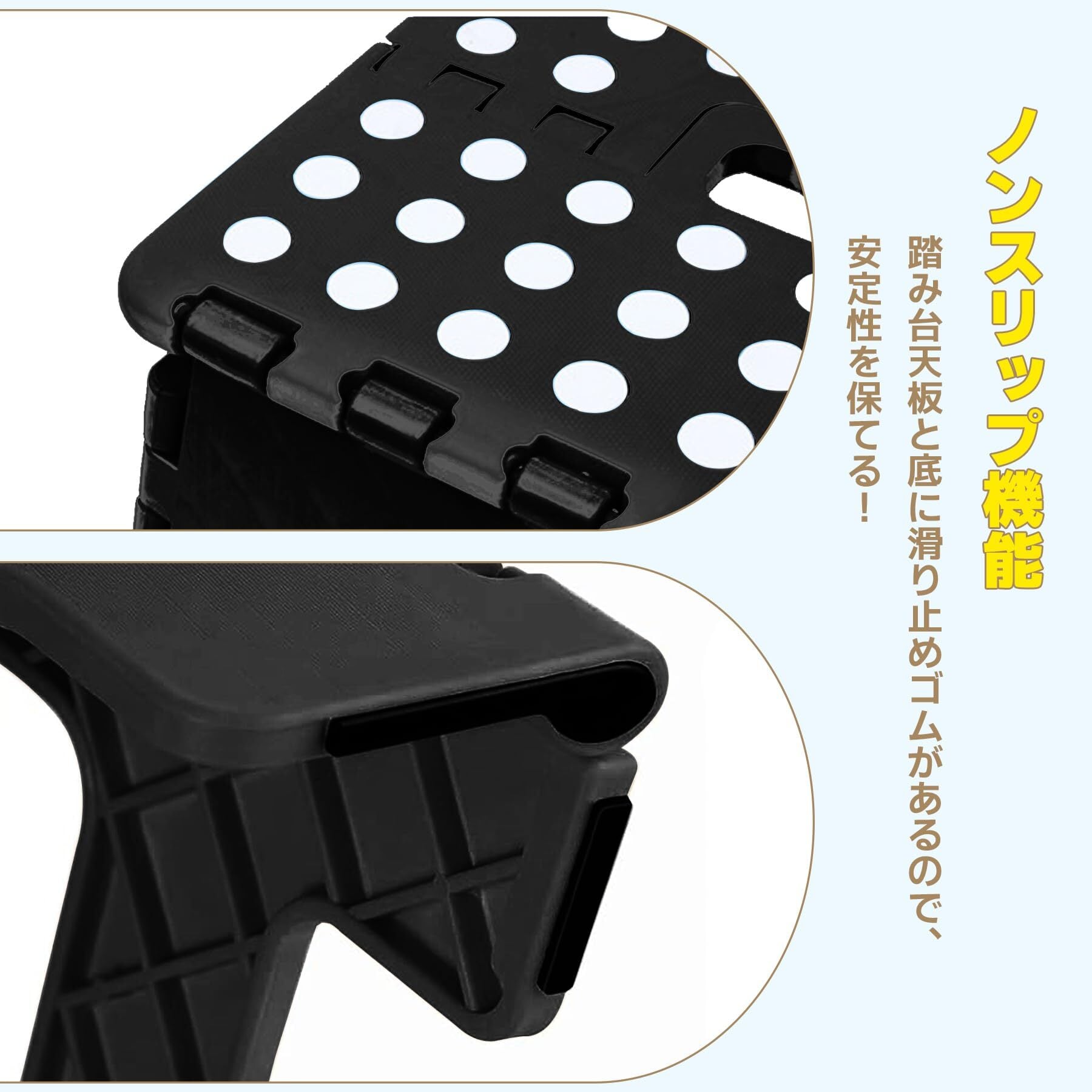 【滑り止め付き】踏み台部分と脚裏には滑り止めが付いているため、昇り降りするときも安心してご使用いただけます。天板の角が丸みを带ひているため、お家族も安心してご使用いただけます。