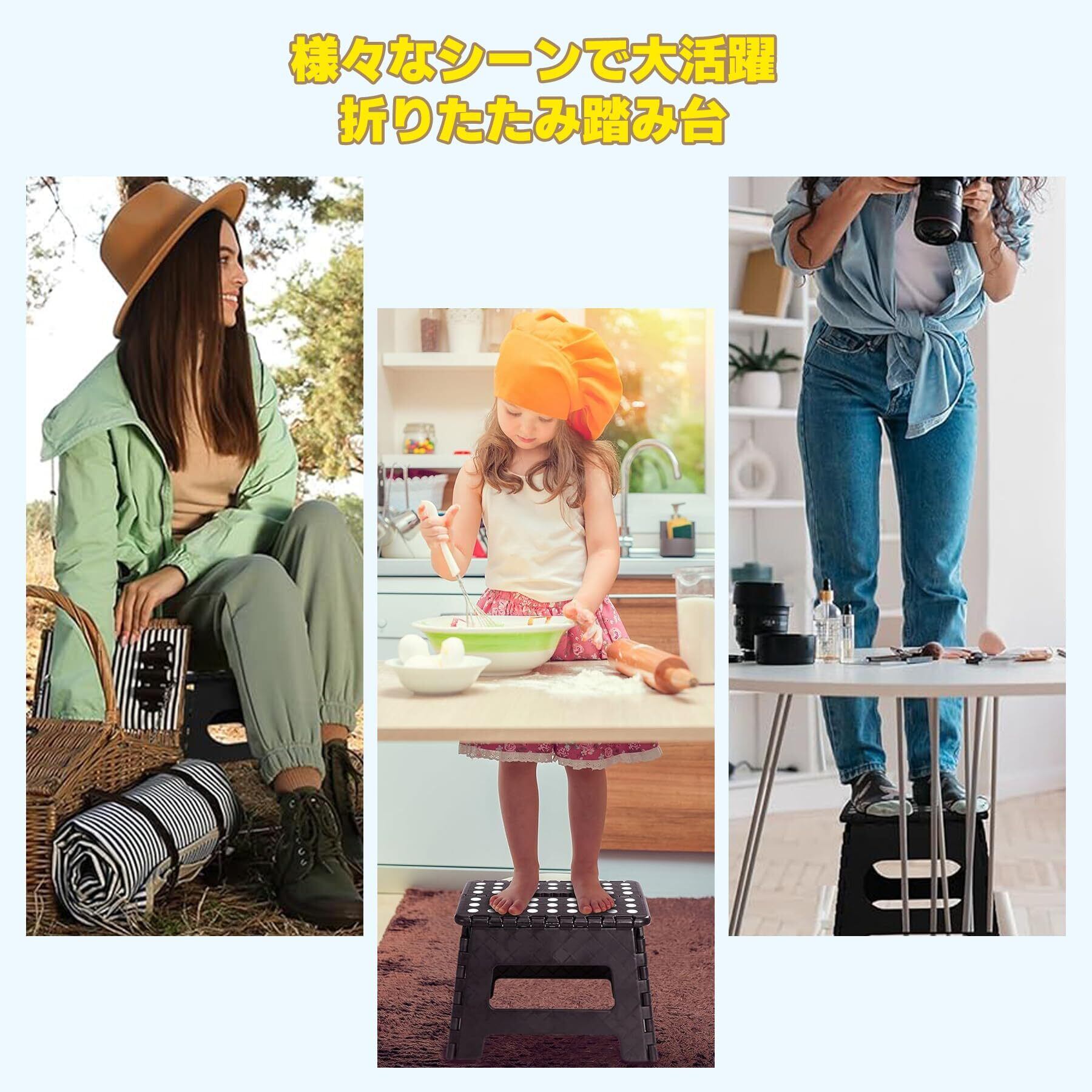 【様々なシーンで活躍】テップ台だけでなく、スツールとしても安心して使えます。例えば少し高いキッチンの収納棚や玄関の棚、さらに洗車するときに踏み台にすると今まで苦労したとこるも楽になります。